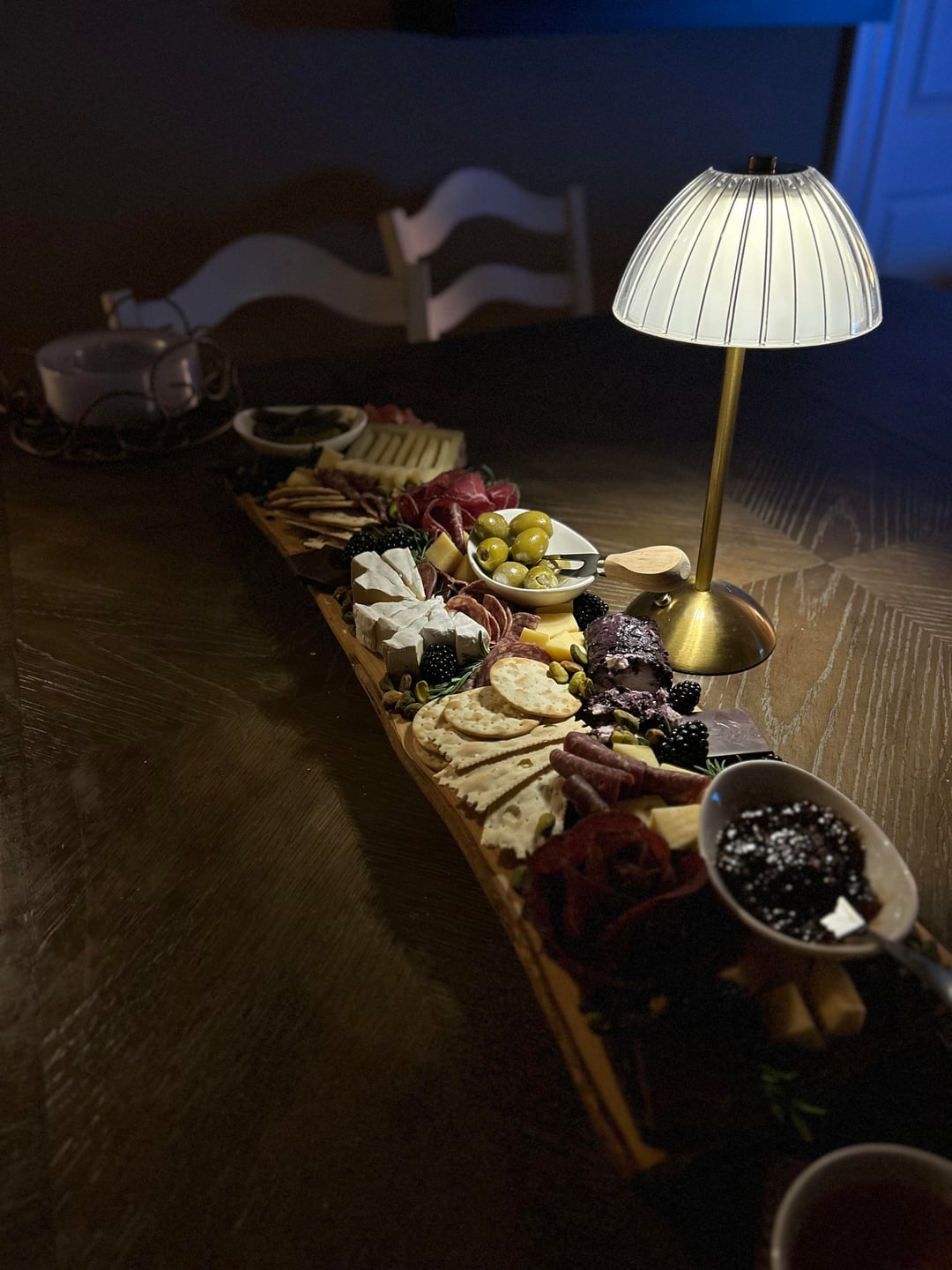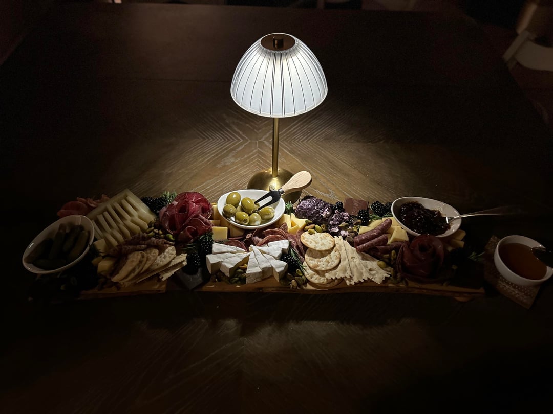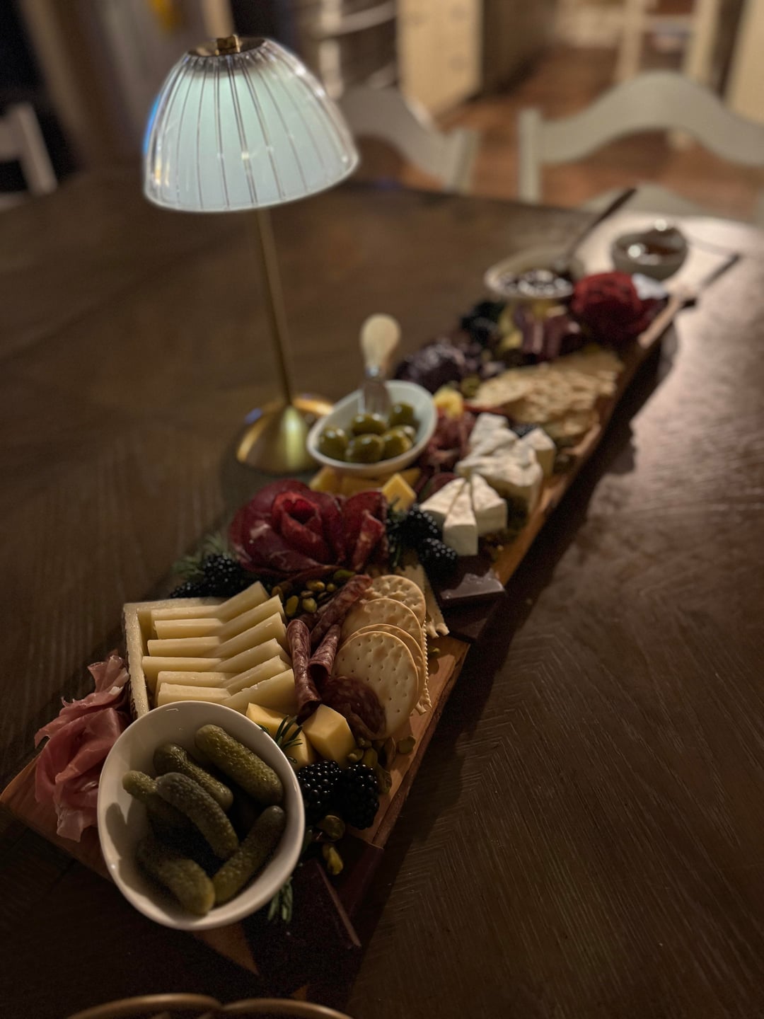 My mother cannot eat pork or chicken, so I sought out cured beef with low hopes of finding anything beyond pork at Publix but was pleasantly surprised to find a few (snuck in a little prosciutto for myself though, it’s my favorite!). I prioritized their preferences over cohesive pairingse. My mother is a big savory/umami/sour/briny/tart person and my sister is very picky but loves salami and pickles. I was a little extra with the lamp and had the rolling credits of ‘Nemo’ playing “Beyond the Sea” on loop for nostalgia. I’m all about the ambience.
