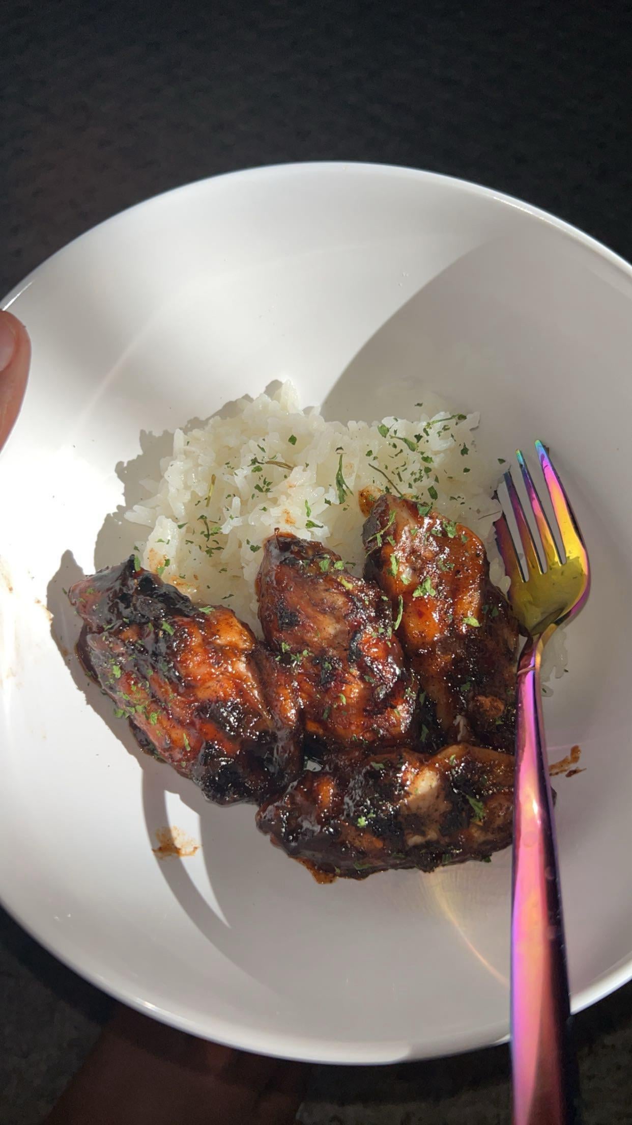 1. Love that it’s all flats, I probably wouldn’t eat them like normally would i’d use the fork to rake off the meat and mix it in with the rice. Looks good though! oh and only 4… =(