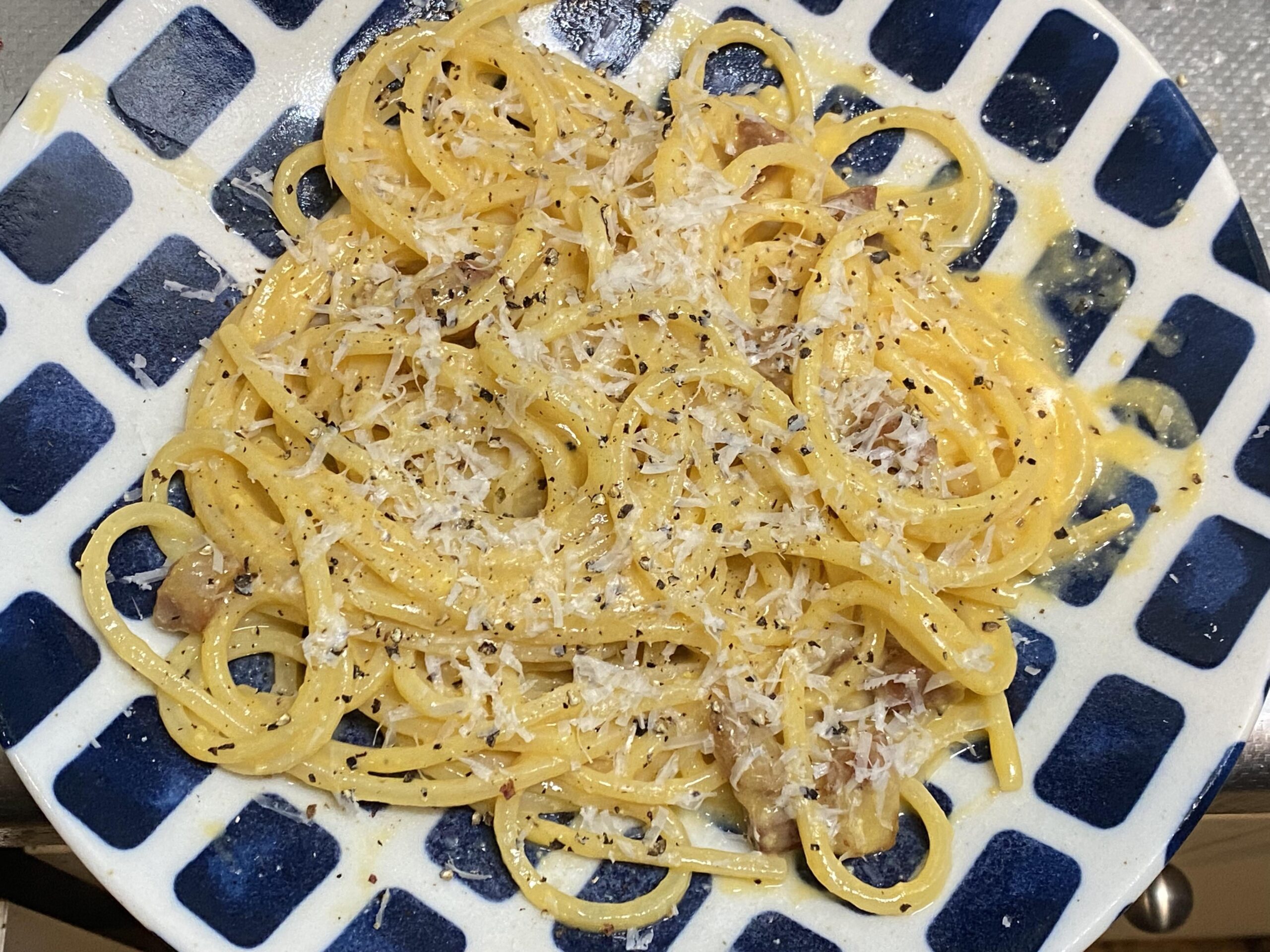 Liguori spaghetti quadrati, guanciale, pecorino romano, eggs, and mix of white and black pepper. I followed Chef Mattia's way as before here: https://www.youtube.com/watch?v=R7WJgNcWHh4