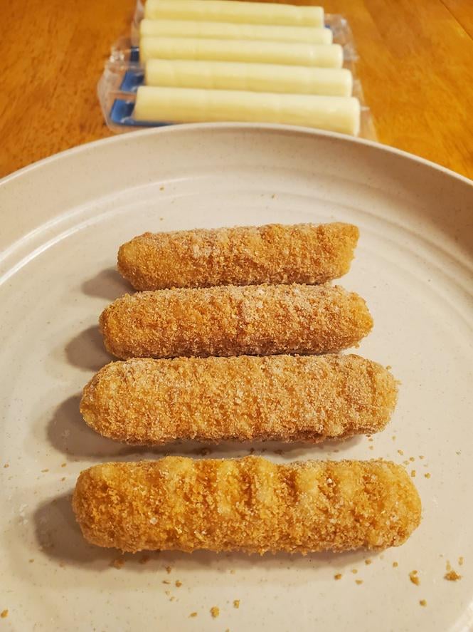 These are crunchy, coated, gooey string cheese, and they can be baked or air-fried in minutes!