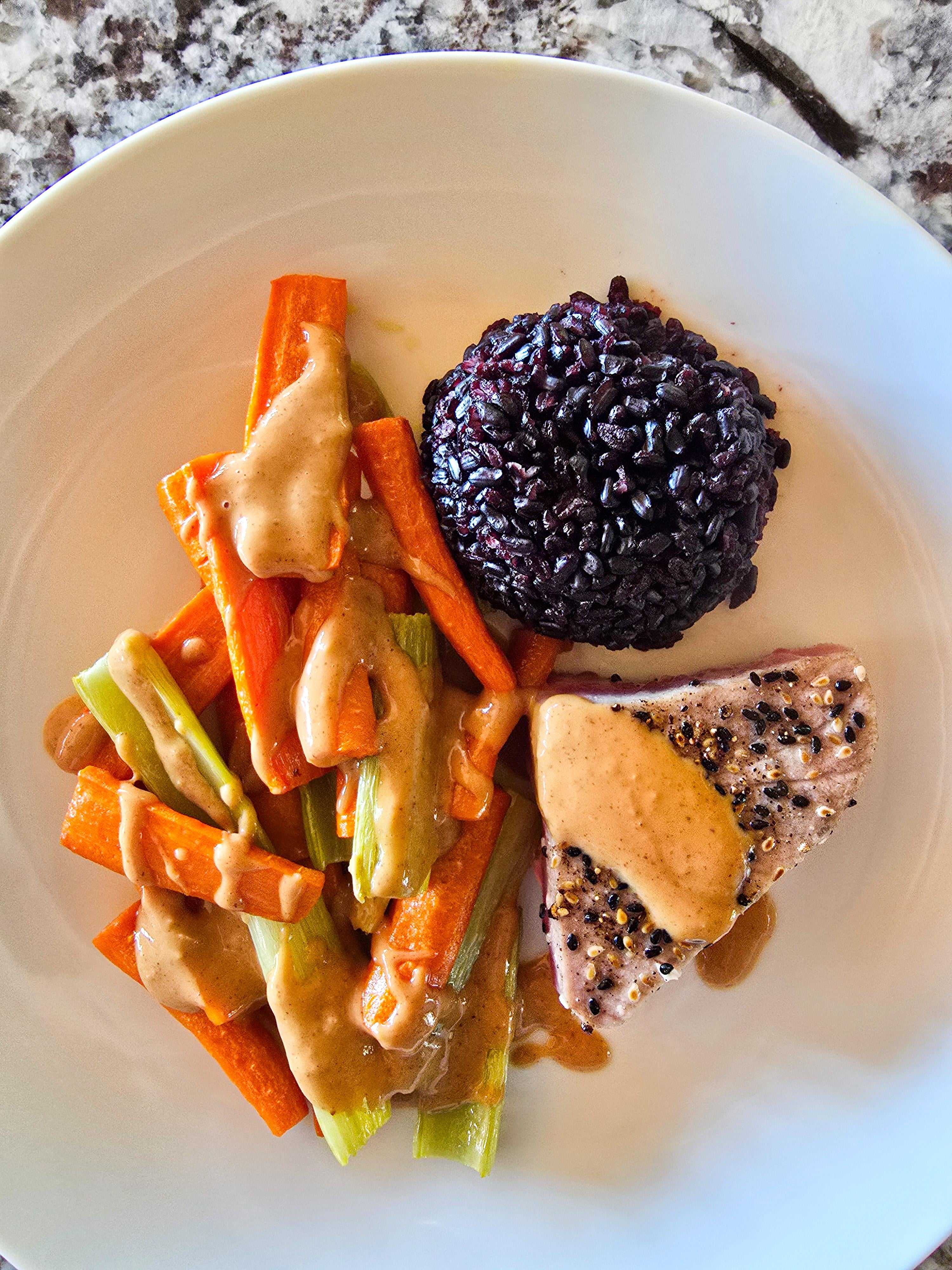 I served it alongside seared tuna steaks, just lightly coated in sesame seeds, some black rice. The whole meal was a hit!