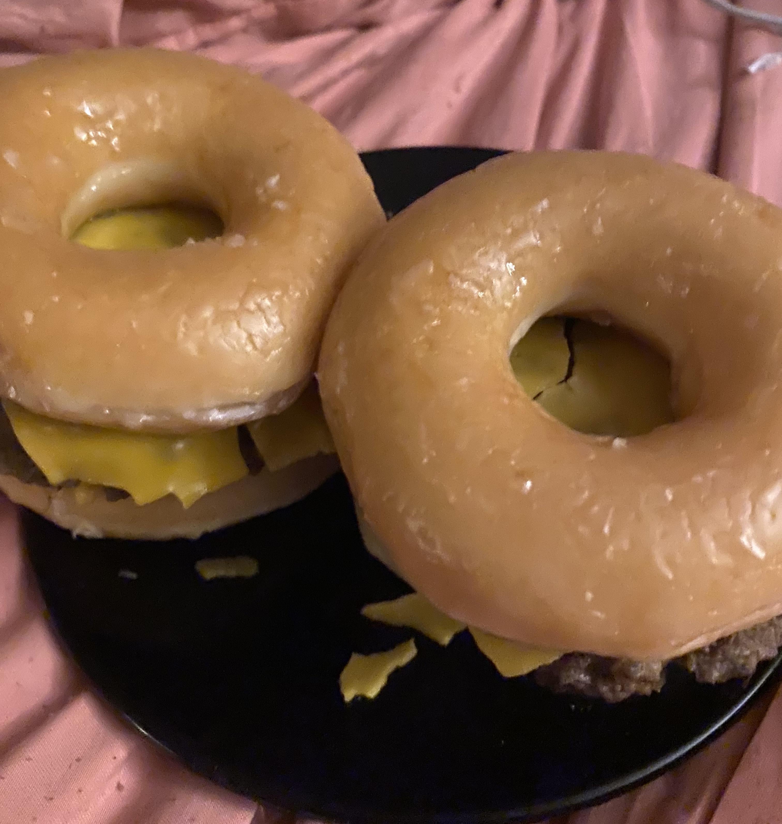 Birthday Dinner: Cheeseburgers on Krispy Kreme donuts