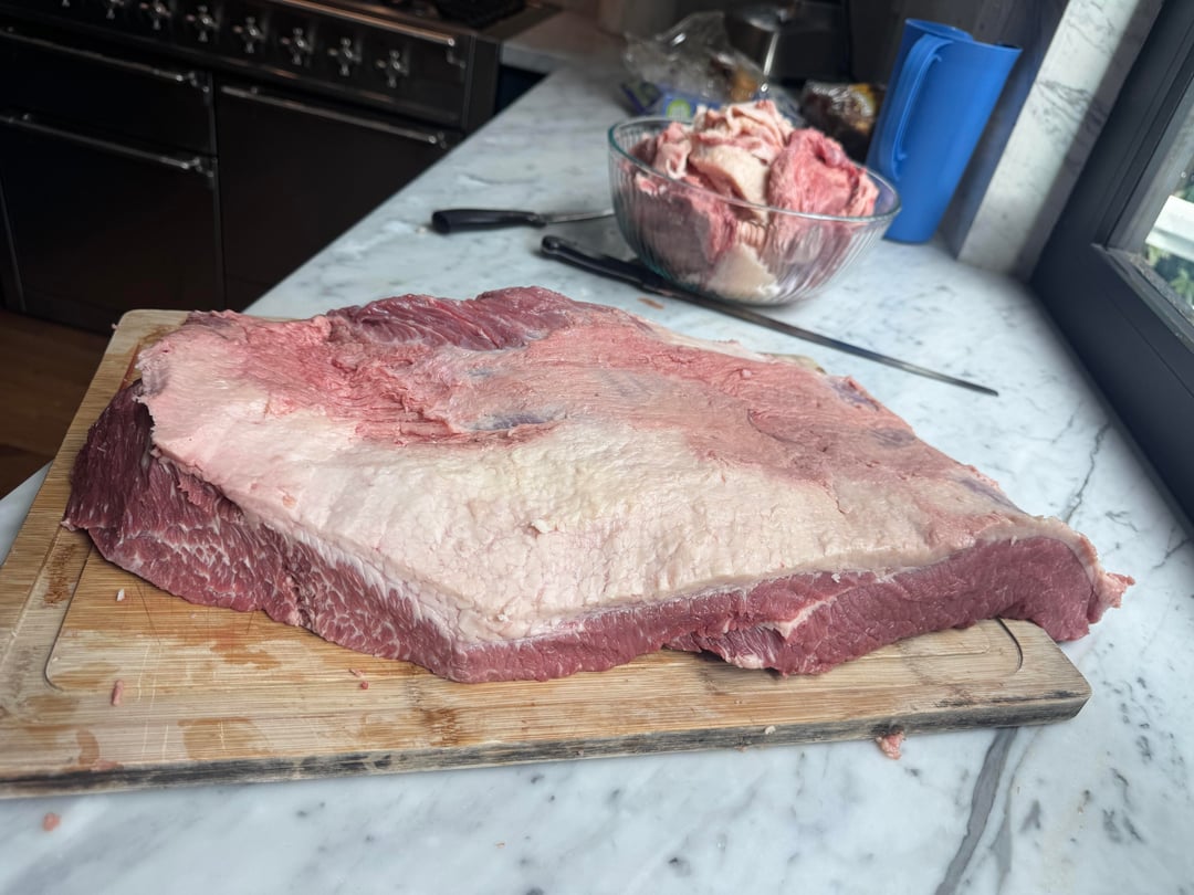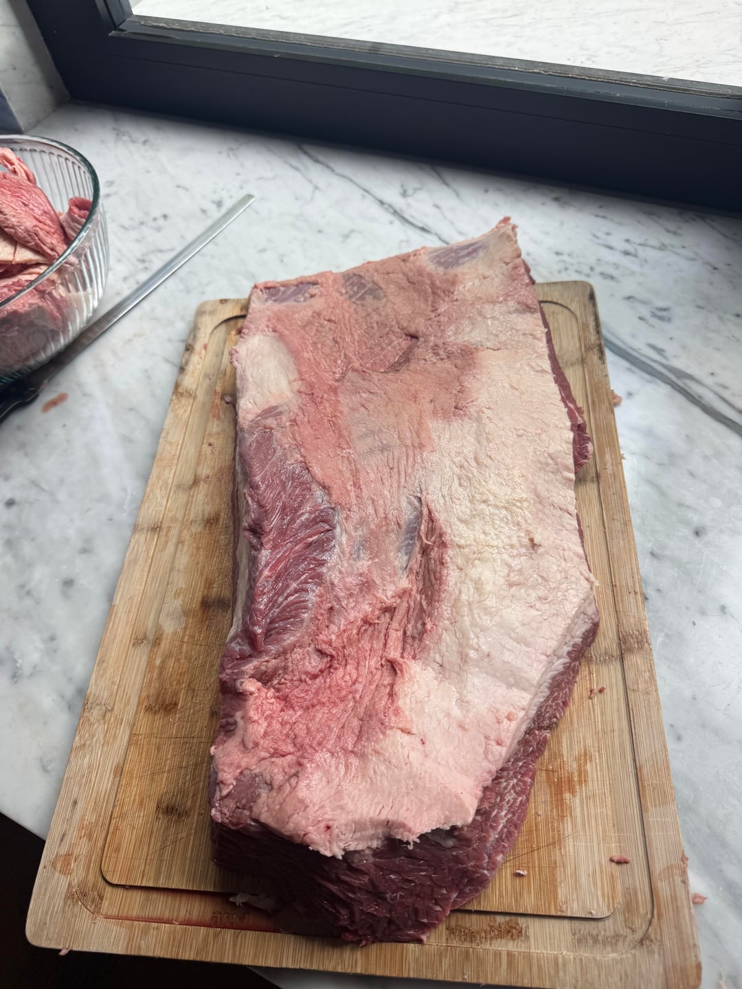 I usually trim all the fat off mine, rub it all over my body, try to find a black bear or preferably a Grizzly, take the left over brisket slab cut into small cubes, attempt to tame said bear, so I can have a guard bear, then go raid the nearest butcher for more brisket, sort of an infinite brisket loophole I’ve discovered