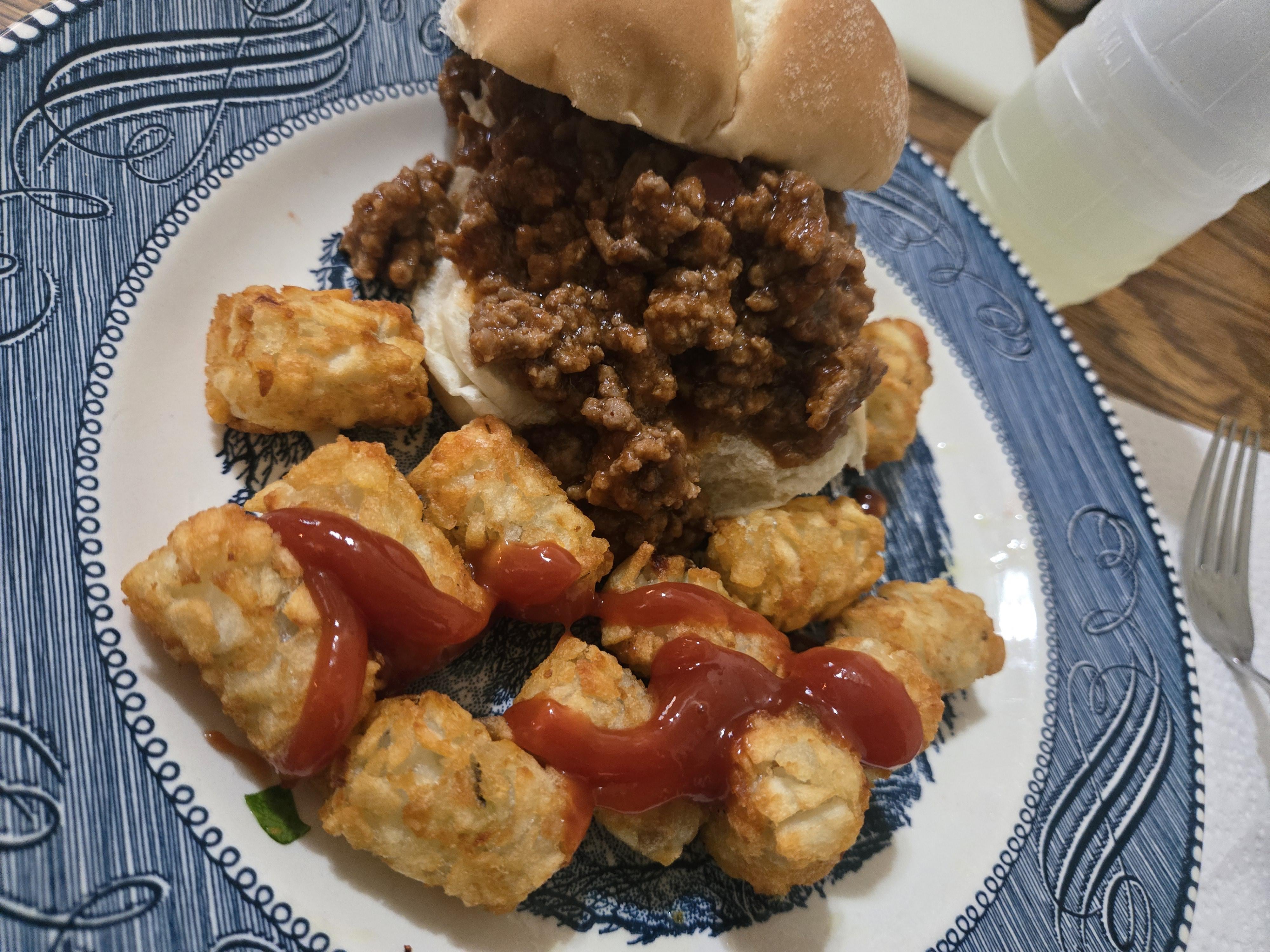 Sloppy Joe and tots, one of my faves!!!! 😋❤️