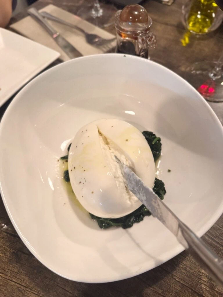 For the uninitiated, burrata has a smooth, creamy taste, sort of like mozzarella, but richer, creamier, with a slight buttery note, and more layers to unveil.