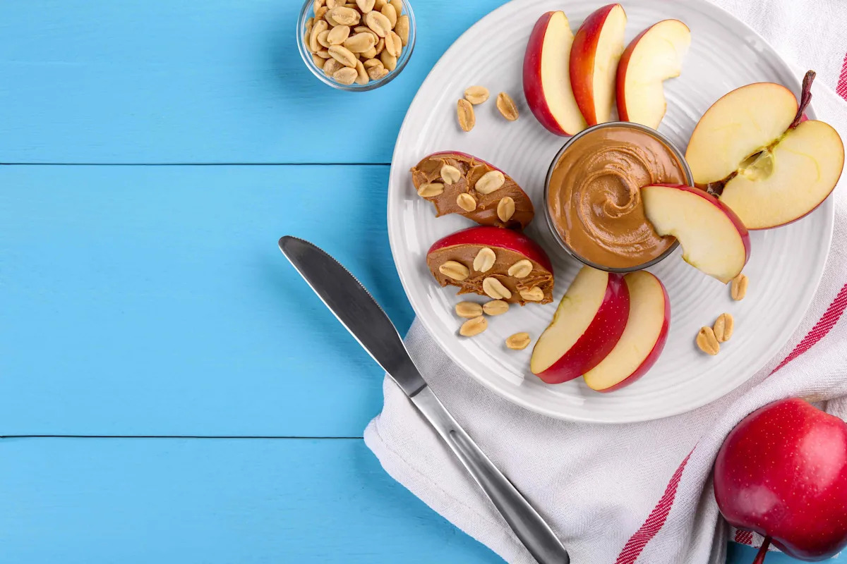 This easy snack is crisp, salty, and sweet. It’s also loaded with soluble fiber, which helps maintain healthy cholesterol levels, protein, and healthy fats. “This combo makes for a steady, energizing snack that feels like a treat,” Peterson says. She likes to sprinkle cinnamon or pumpkin pie spice on her apples for an extra boost of flavor.