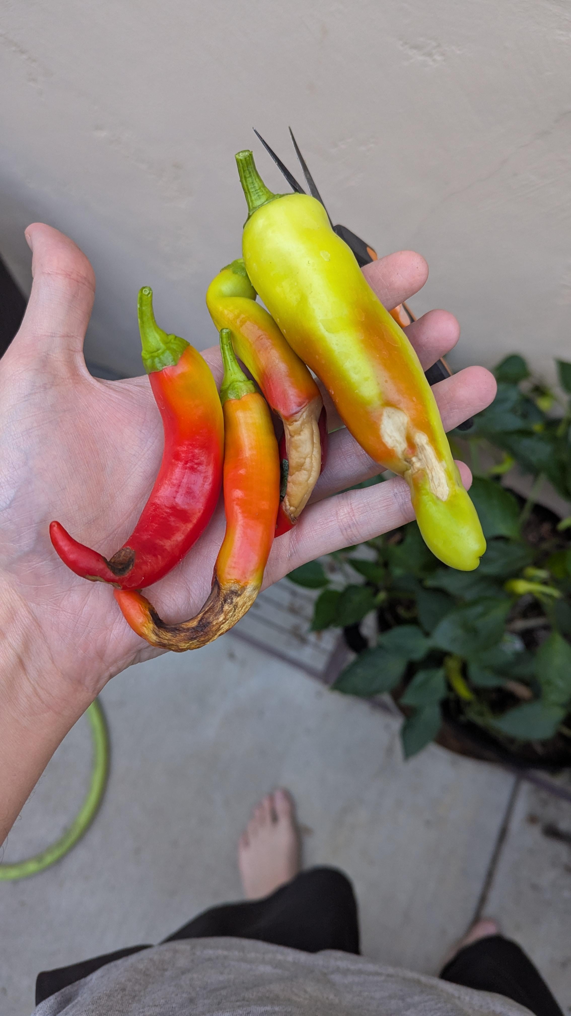 I don’t think they are getting sunburned because many aren’t even directly in the sun since they are shaded by the leaves. but it’s happened to every pepper that has a little bit of red. am I just waiting too long to pick them?