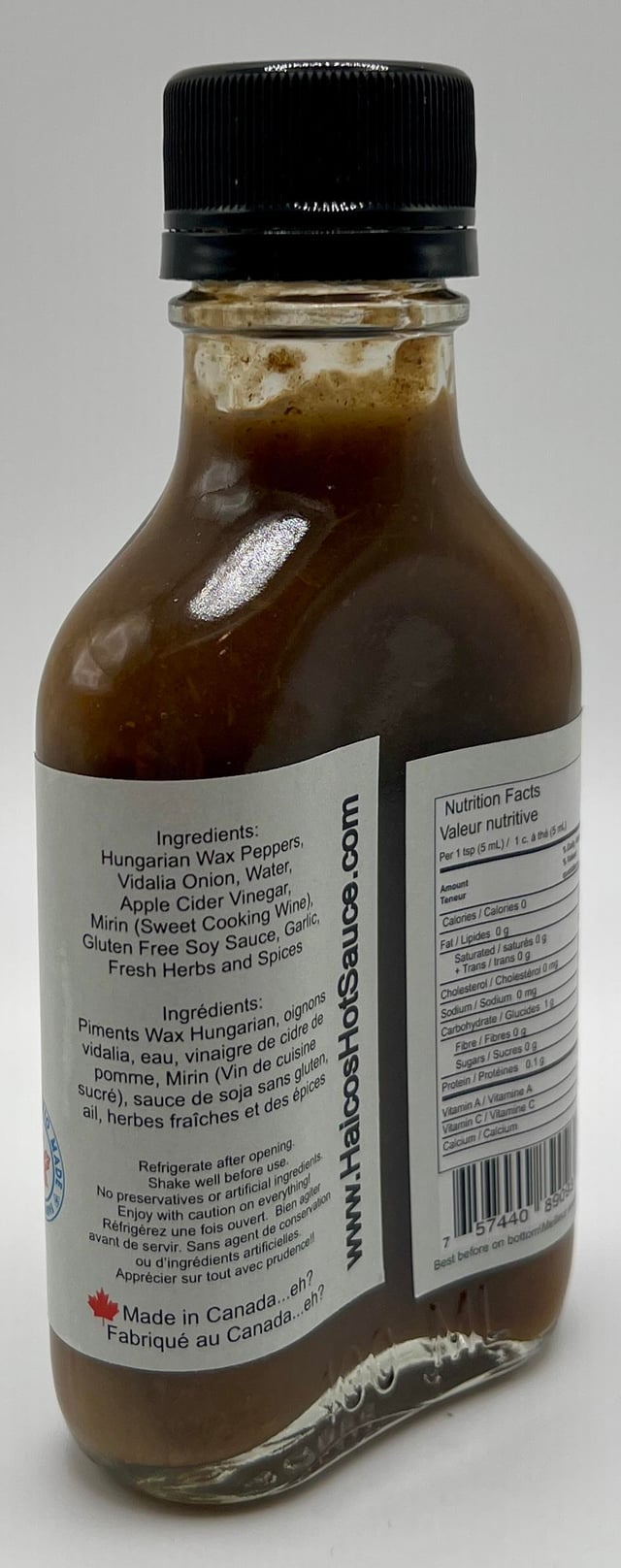 Ingredients: Hungarian Wax Peppers, Vidalia Onion, Water, Apple Cider Vinegar, Mirin (sweet cooking wine), Gluten Free Soy Sauce, Garlic, Fresh Herbs and Spices