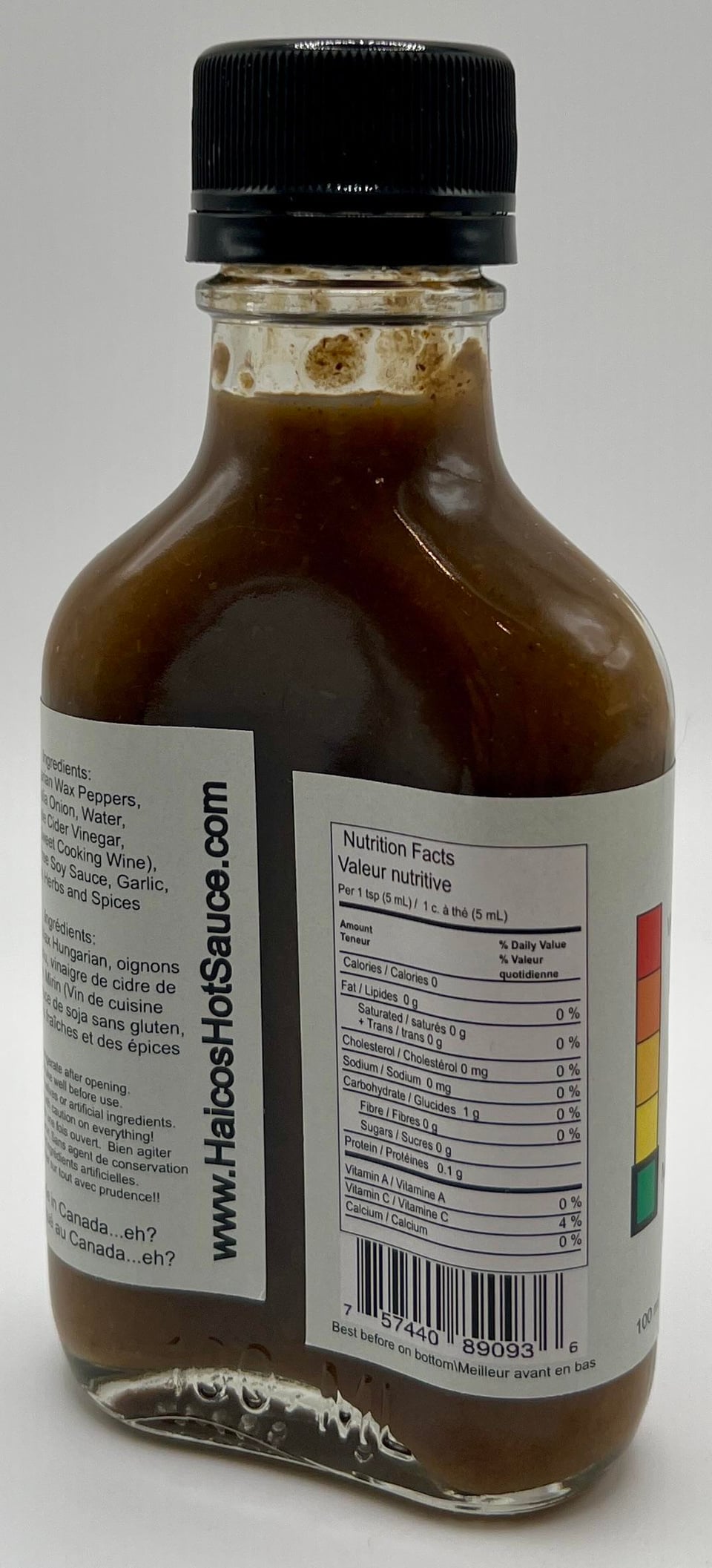 I’ve previously tried several hot sauces from Ottawa based Haico’s Hot Sauce including the extremely spicy (and delicious) Canadian Colon Cleanser and the medium-heat (and also delicious) Are You Wing-Sperienced. This time I decided to try a sauce that was on the very mildest end of their spectrum. According to Haico the inspiration for this sauce was his wife who has an extremely low spice tolerance making him want to create something flavorful and mild for her.