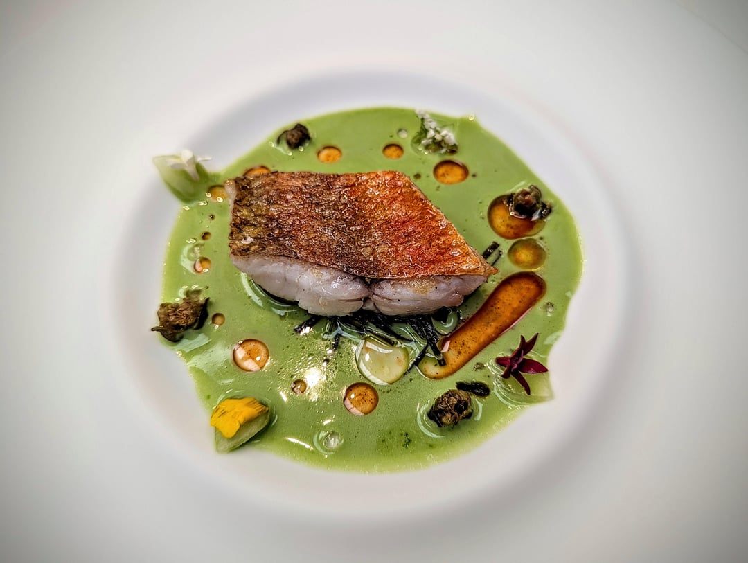 - Red mullet aged in seaweed, watercress, and Buddha's hand (pictured first)