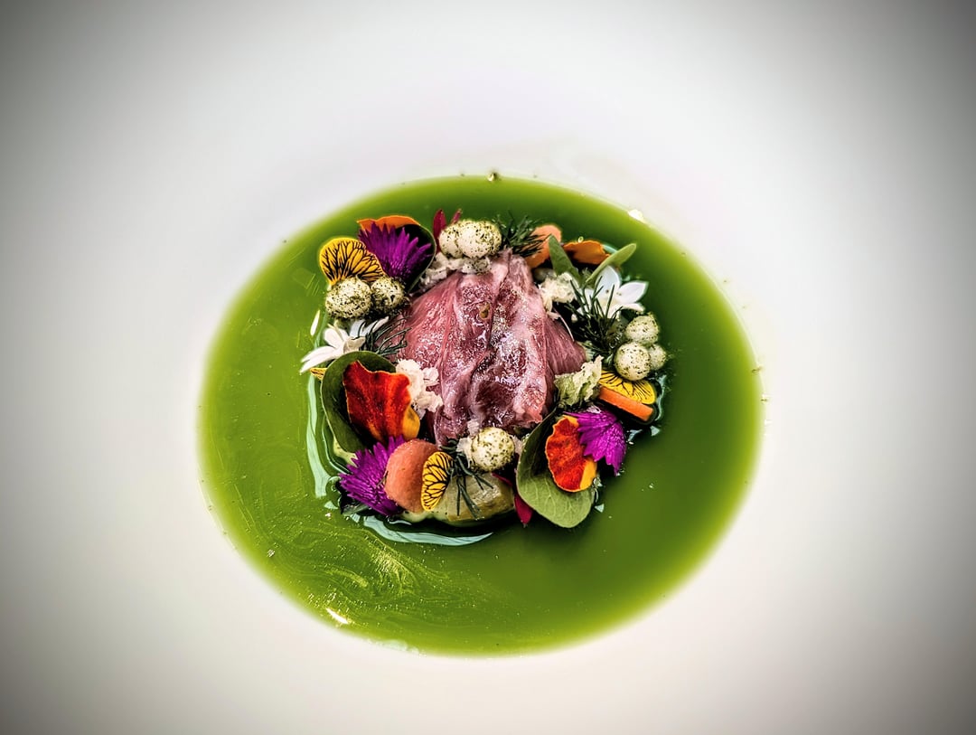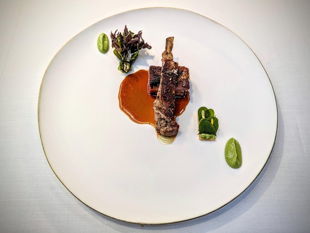 - Aged suckling lamb with spices and herbs, wild greens and mint