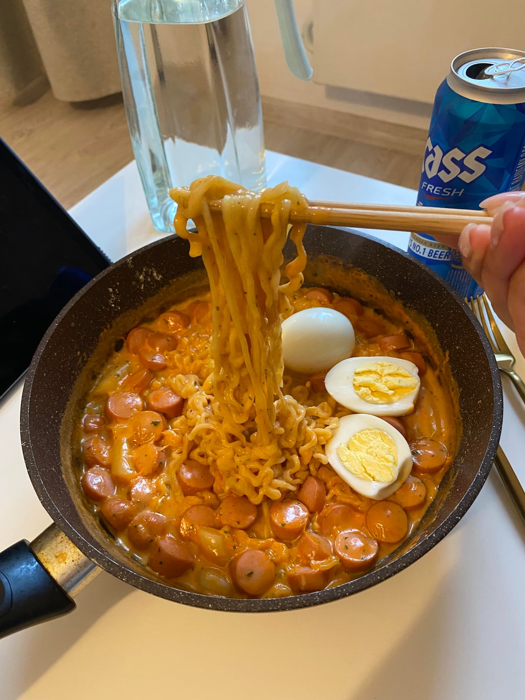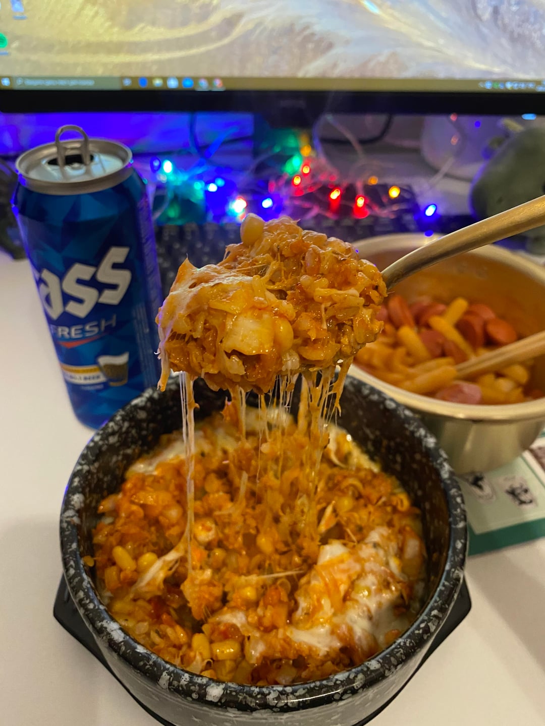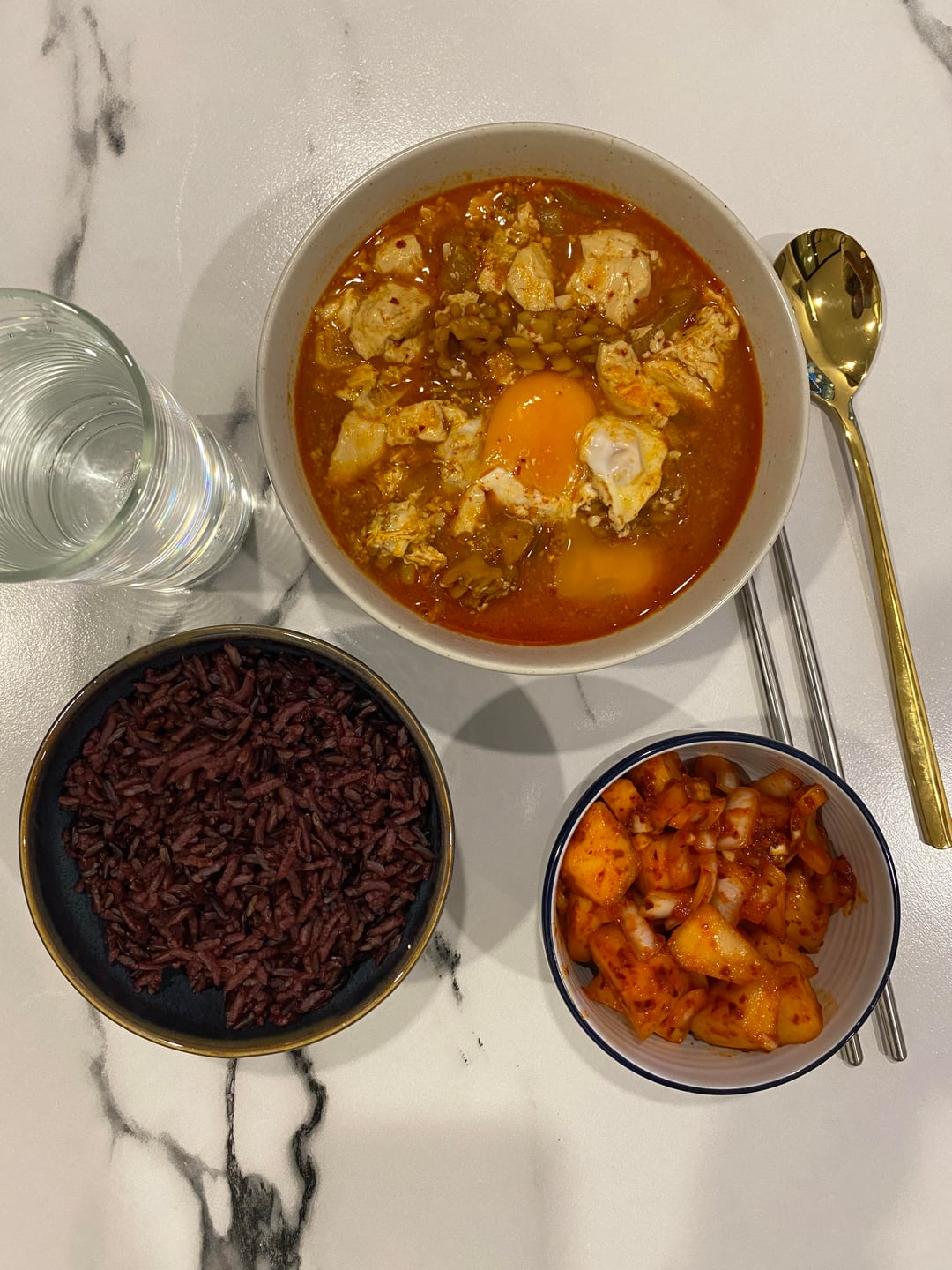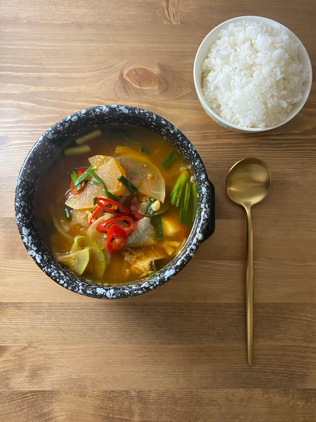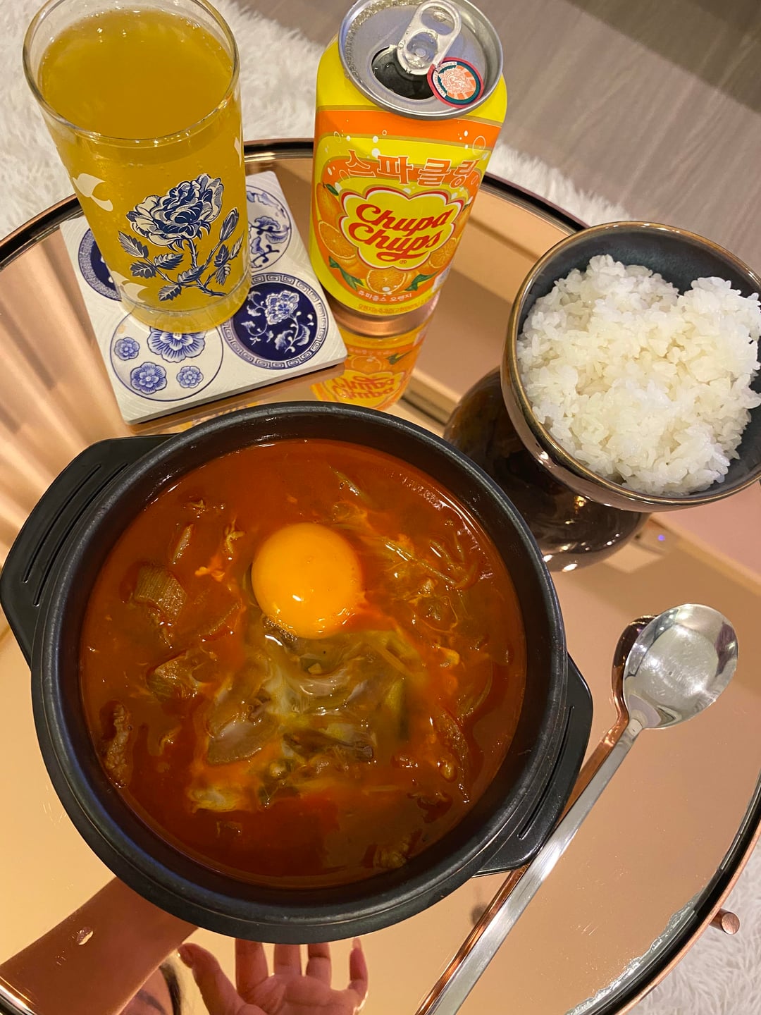 1 – Doenjang jjigae + spinach banchan, 2 – Kimchi jjigae, 3 – Bibimbap, 4 – Miyeokguk, 5 – Yukgaejang, 6 – Jjimdak, 7 – Byeongeo jorim, 8 – Sundubu jjigae + kkakdugi, 9 – Jjajangmyun, 10 – Bibimbap again, 11 – Haemultang, 12 – Bibimmyun, 13 – Spicy enoki mushrooms, 14 – Maeuntang, 15 – Rapokki, 16 – Corn cheese