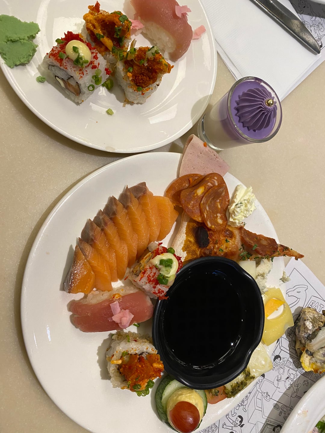 I think this is the largest sushi boat I’ve ever seen it like a sushi cruise ship 🤣🤣🤣🤣