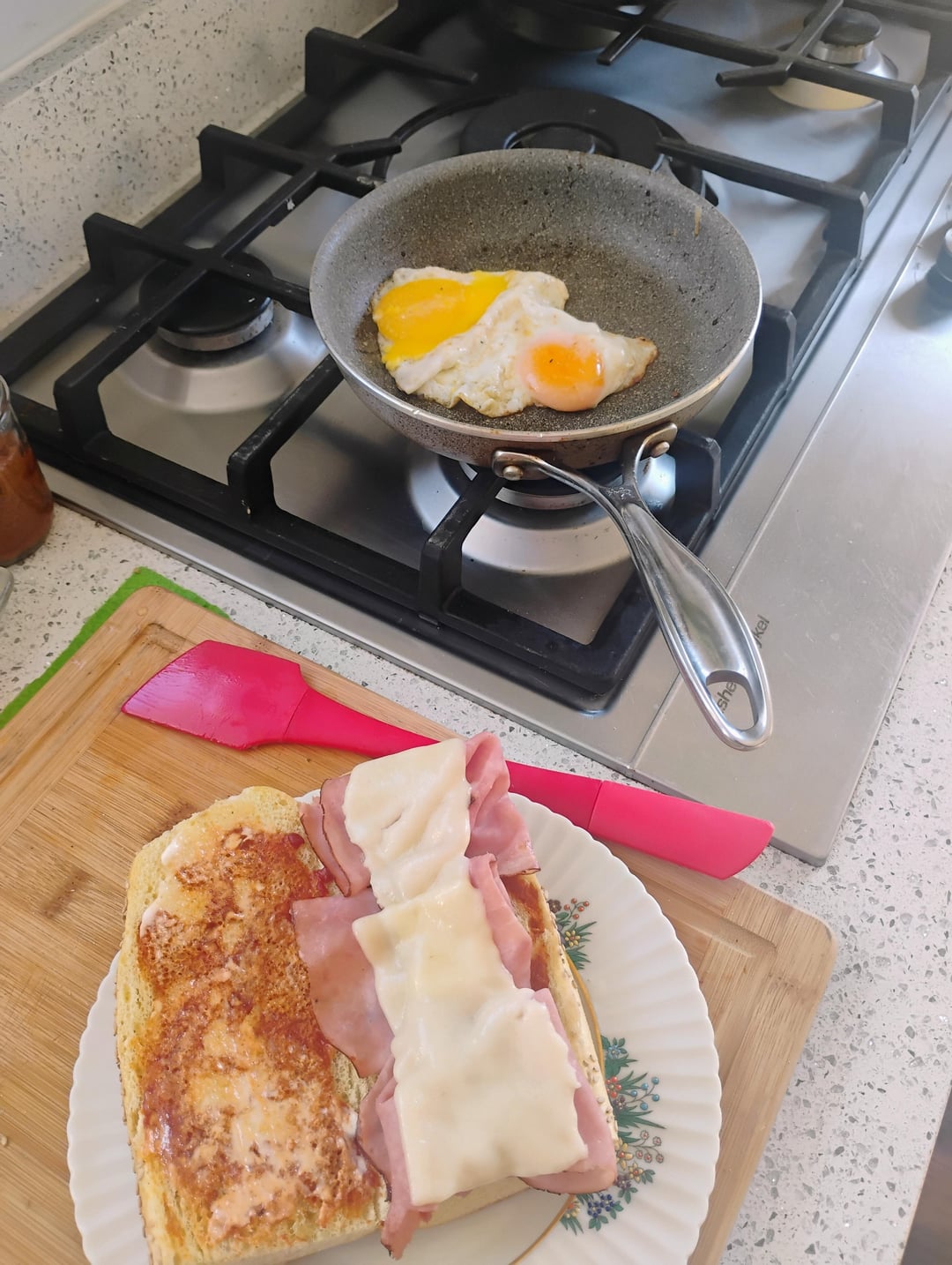 Full disclosure: I bungled the egg transfer from the pan to on top of the sandwich, they landed face down between the wood cutting board & stove grate so I lost a lot of yolk 😢 still was good by rdfiii 3 Comments MagazineDelicious151 1 day ago Looks great. PiG_ThieF 1 day ago Liscio’s rolls are top tier. unbrkable420 1 day ago I’d smash