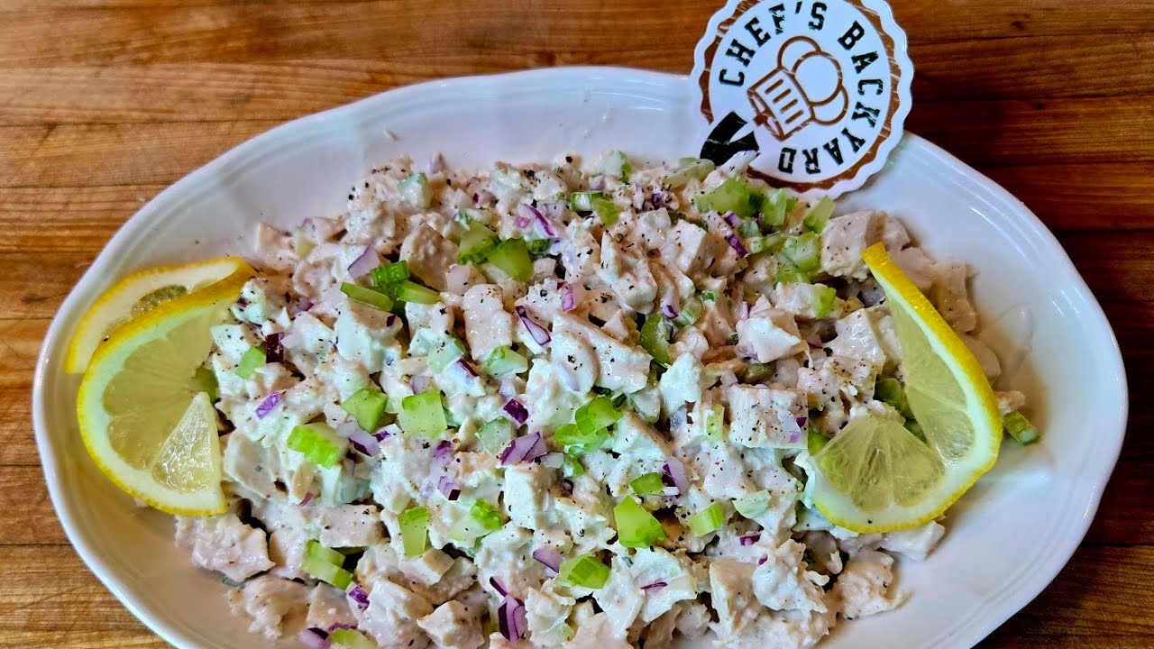 Hey guys, welcome to the chef’s backyard. In this video, I’m going to show you how to make a delicious chicken salad that you can entertain with. The holidays are coming. Wouldn’t you like to show up with a great dish? Today, we’re going to put it on croissants with a little bit of spinach. Let’s take a bite. Yeah, you’re going to love this recipe. You ready to cook? Let’s go. First things first, we want to start with a nice sharp knife. I’ve got this little knife sharpener. This side will sharpen to 15°. Let’s go ahead and we’ll give it a couple of passes. We’ve got a rough side and a smooth side. [Music] Then we can turn it over and do the smooth side. And we’ll flip our knife over again. And now we can check our knife for sharpness. sharp. It’s a nice sharp knife. So, for our chicken salad, we’ll need a few ingredients. We’ll need some cooked chicken, some celery, some lemon, some red onion. You could also use green onion or pretty much any any onion you have on hand. And then to make the dressing, we’ll need some mayonnaise, salt, and pepper. This is going to be a classic chicken salad. For the chicken salad, I like the vegetables to be cut really thin, kind of fine. So, let’s go ahead and cut our celery in half. And then we’re going to cut it want to cut it into more manageable little strips. We can get rid of some of that. Set that to the side. Now, once we’ve got those strips, we can go ahead and cut it into real fine pieces. Now, you can only do this with a sharp knife, okay? So, you want your knife to be nice and sharp. That’s why we started out by sharpening by honing the edge. Okay? All right. So, we’ll grab our bench scraper. What we’re doing right now, guys, is we’re doing our misin flask. And basically what that means is we’re getting our vegetables and everything cut up so that that way we have everything ready for whenever we assemble it. There’s your celery. Diced celery. We’re going to take our lemon. We’re going to roll it first. You start to release the juices that are in the lemon. So, whenever you squeeze it, it’s going to give you more juice. We’ll cut that in half. And we have our onion. We’re going to go ahead and cut that in half. [Music] Then we’ll remove the outer layers. They’re kind of tough, hard to chew through. Now, you can do it a couple of ways. You can leave that there. It gives you a little bit of a handle. Or you can cut it off. Choice is yours. Use a bench scraper. So now the old way is to go ahead and cut through this. You want to lay your hand flat. The tighter the thinner your cuts this way, the smaller dice you can get. But this is kind of dangerous. So I don’t know. Choice is yours. The way the chef’s knife is curved allows you to cut this without going all the way through your vegetable. And again, the smaller you dice this, the finer dice you can get. Okay, [Music] we’re just going to cut through this onion. And now we’re going to turn the onion this way and we’ll cut across. Okay, I’ll do it this way, too. Cut across it. And that way, as you can see, your onion is diced. [Music] And then just hold on to this. If you want some onion strips or something for the rest of the sandwich, you’ll have that available, too. We’ll grab our scraper. Oops, there’s a couple of big pieces. And get rid of those. [Music] And there’s your diced onion. We’ll go ahead and wipe our station down. Nice clean knife. Right now, we’re ready for our chicken. And we’ll take our chicken. This chicken is poached and chilled. And it’s kind of going to fall apart on us. But I like to do kind of about/4 to/ in pieces. I think that’s a good size for a sandwich [Music] [Music] again. Just cut it down. [Music] Turn it. [Music] Stack a few pieces together. You can also do shredded chicken salad. That’s a nice one. And you’ll see that a lot with rotisserie chicken. And you just want to take your meat, find the way that it’s find the way that the grain is running, and then just peel it apart. And that stacks up nicely, especially if you’re serving it over salads or, you know, even in sandwiches. Just gives it a different texture, little different look. Makes it kind of fun. But there you have some shredded chicken. Okay. And same thing, if you want that cut a little bit smaller, you can kind of cut through it. But a lot of times you want to leave it long. Since we’re doing cube chicken salad, we’ll go ahead and cut that up. And there we have it. We’ve got our diced chicken for our chicken salad. All right, guys. So, we’ve got our ingredients prepped out. We have our chicken cubed. We’ve got our onion and celery diced. We’ve got our lemons cut in half. Now, let’s take our bowl and we’ll go ahead and we’ll start mixing our salad dressing. For this recipe, we want half a cup of mayonnaise. So, I have a/4 cup measure here. We’ll do that twice. There’s one and two. So, that’s a half a cup. into that. We’ll go ahead and squeeze the juice of half a lemon. Calls for a tablespoon. This is a pretty big, pretty juicy lemon. We’re going to add some salt. Probably about a teaspoon. Same thing with our pepper. Probably about a teaspoon. Then we want to go ahead and combine this. This is going to be the dressing for our salad. Now, we 1/4 cup of celery. We’re going to do two tablespoons of red onion. We’ll give that a mix. And by doing it this way, all of the flavors from the celery and the onion are starting to mix with the mayonnaise and the lemon juice. And so you’re kind of already intensifying the flavor of that. Now, let’s add in some of our chicken. I like to kind of do it in steps because that will help you to get a better mix on your salad there. And then we’ll go ahead and just combine all of that. Take a look. See if it needs more dressing. Have a taste. See if it has enough salt, pepper. I do like where the salt is at. I’m going to add a littl