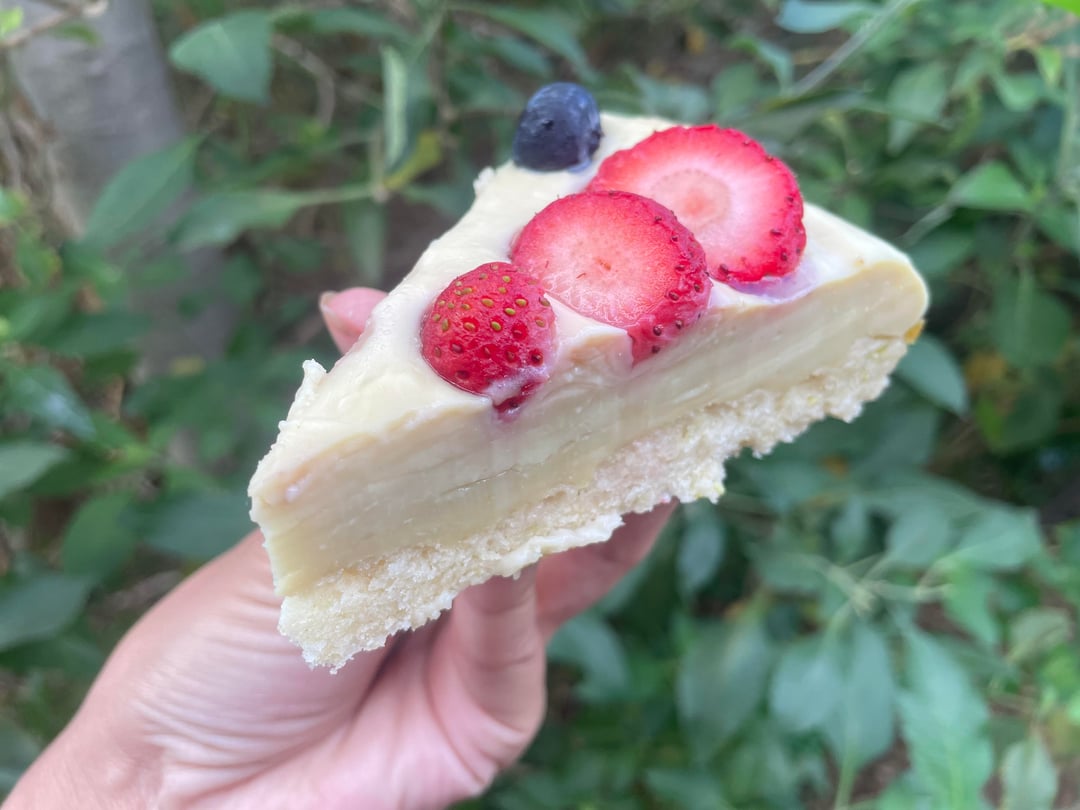 Slice StrawberriesSlice each strawberry lengthwise into three slices, then apply the strawberry slices to the custard, as shown in the picture.