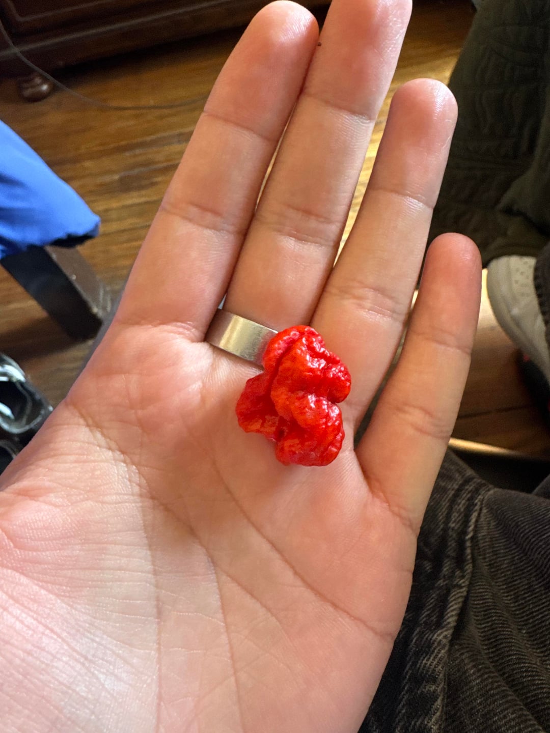 I asked chatgpt and it said Carolina Reaper. based on the answers, it might just be it. I do plan on trying it but I want someone to suffer with me. ๐Ÿ˜‚