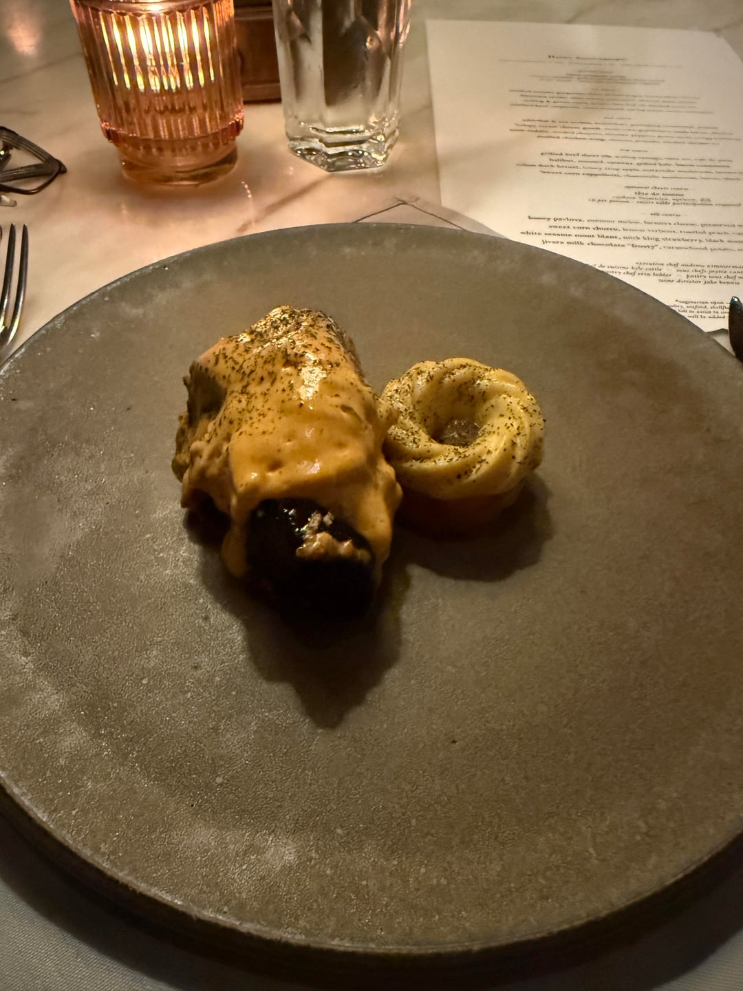 Pic 8: grilled beef short rib and scallop tamago on tater tot