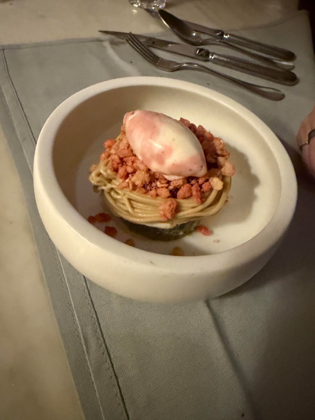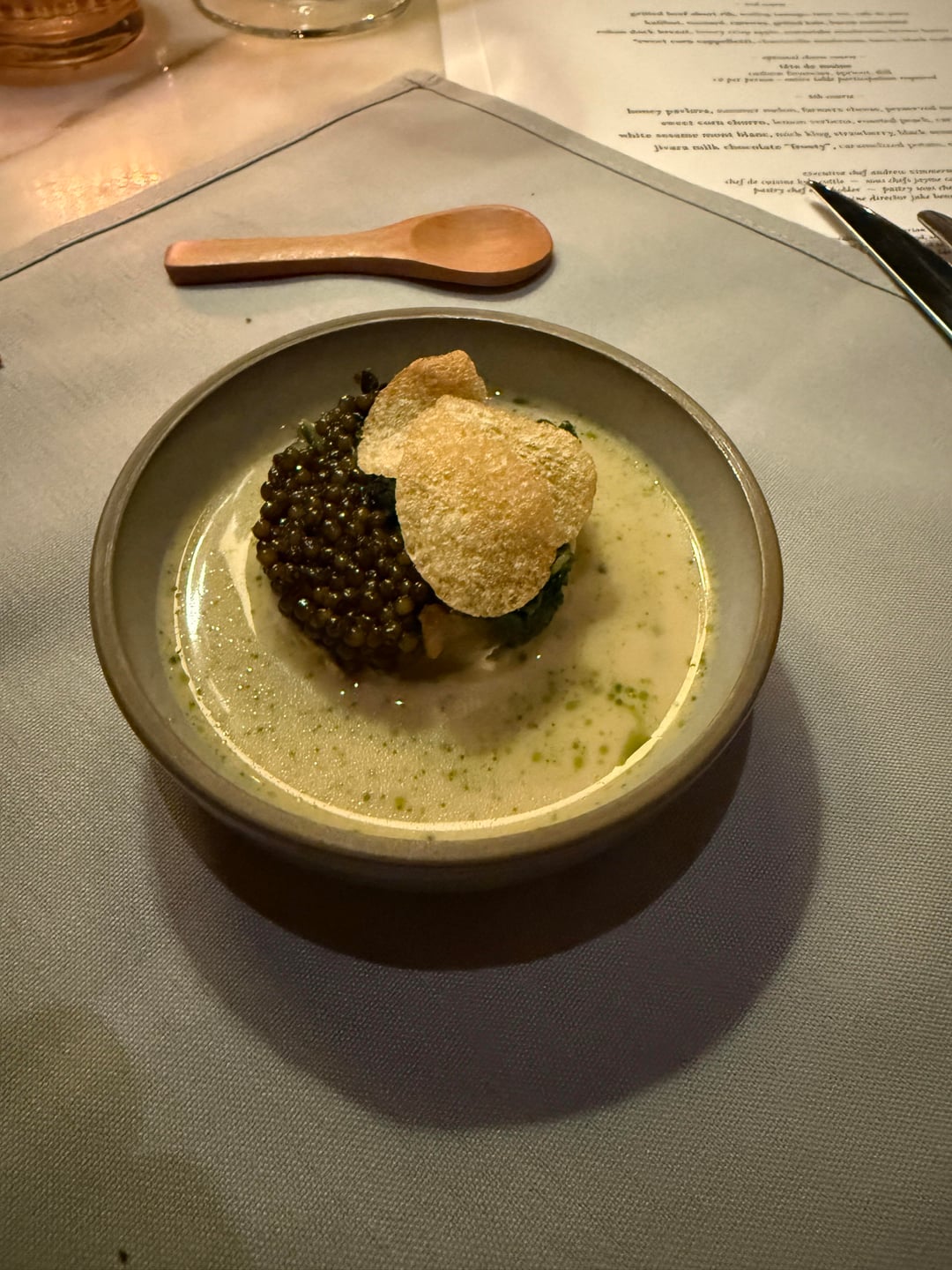 We had the four course meal with the zero proof pairing (we restrict our alcohol intake). They started our night with two glasses of complementary champagne. A very nice touch to begin the celebration! The non alcoholic drinks paired nicely with every course (two were bottled, two were mixed drinks). After dinner we enjoyed two of their most know cocktails, ending the amazing experience on a great note! We will definitely go back again!