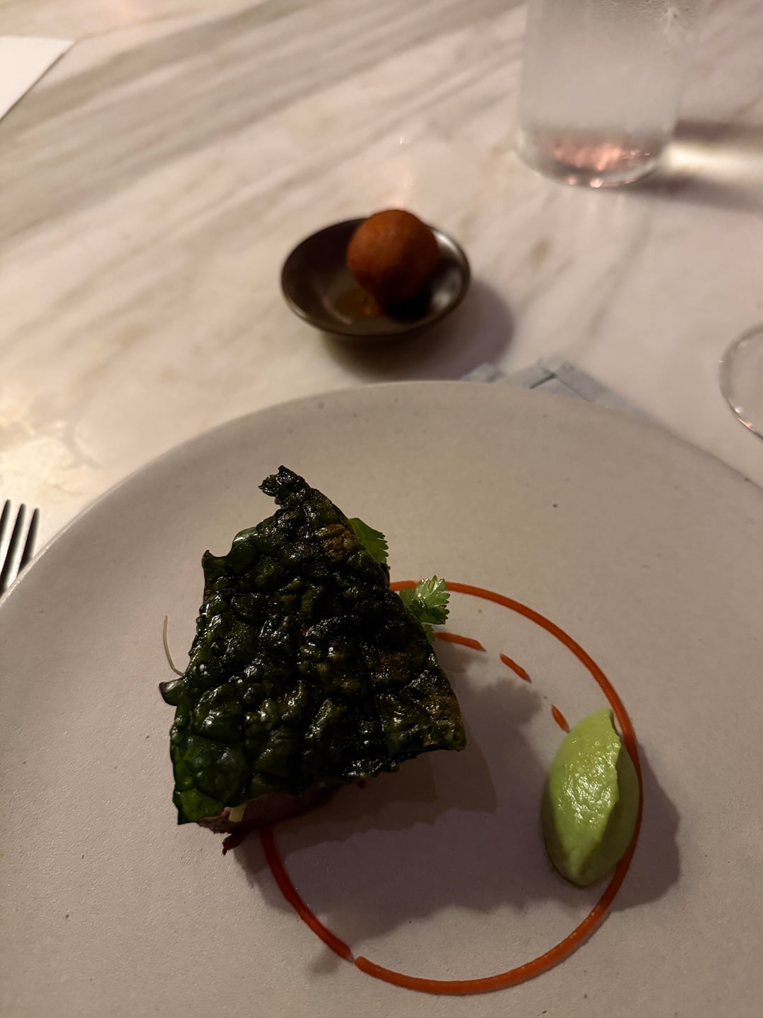 Pic 7: lamb saddle with green mole and crispy barbacoa