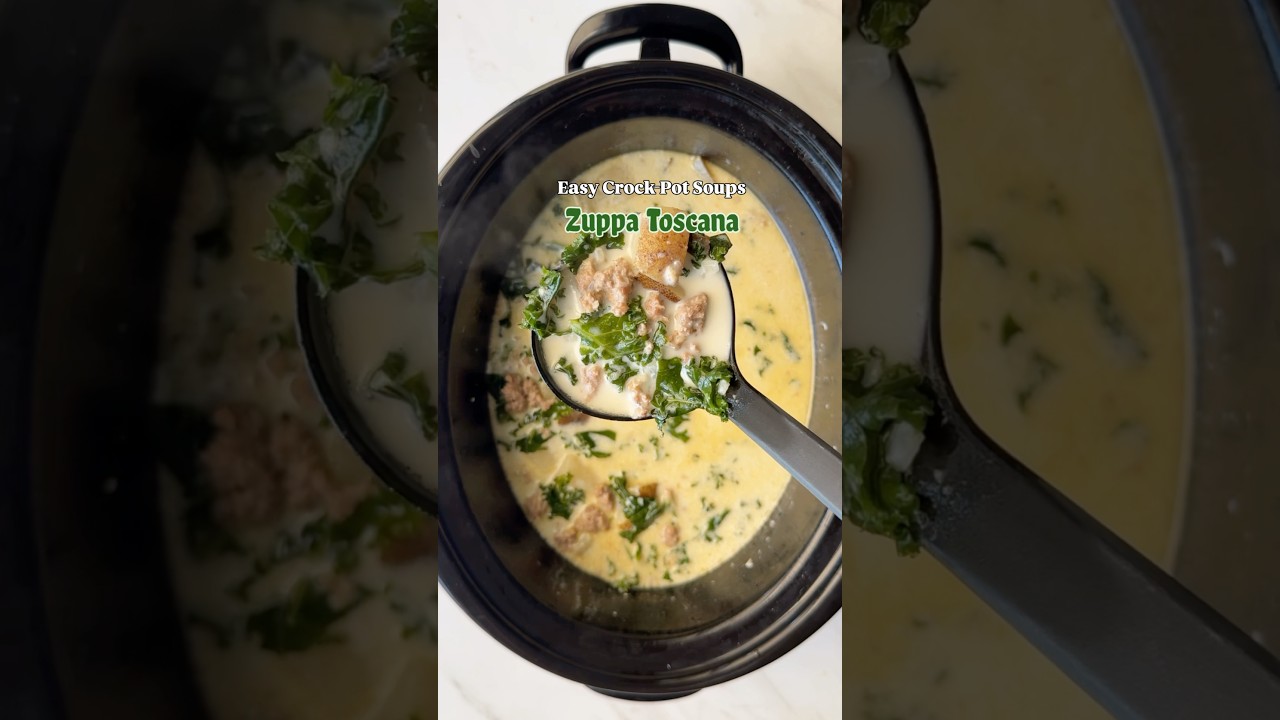 Zupa Toscana is Olive Garden’s most popular soup for a reason. This flavorful slow cooker version is easy to make. Brown the sausage, onion, and garlic and add it to the crock pot. Add potatoes, salt, pepper, red pepper flakes, broth, and water. Cook on high for 2 to three hours or low four to six. The last 10 minutes of cooking time, stir in the kale and cream.