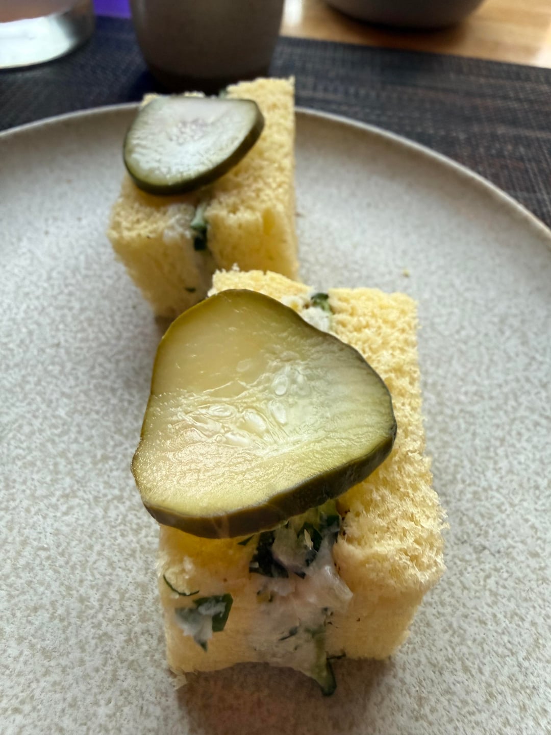 Walleye sandwich with house pickle.