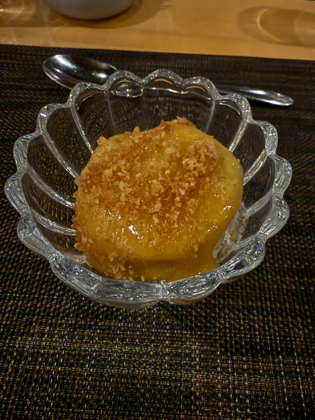 Corn Husk Semifreddo. Peach & Maple Glaze. (Weird but good.)