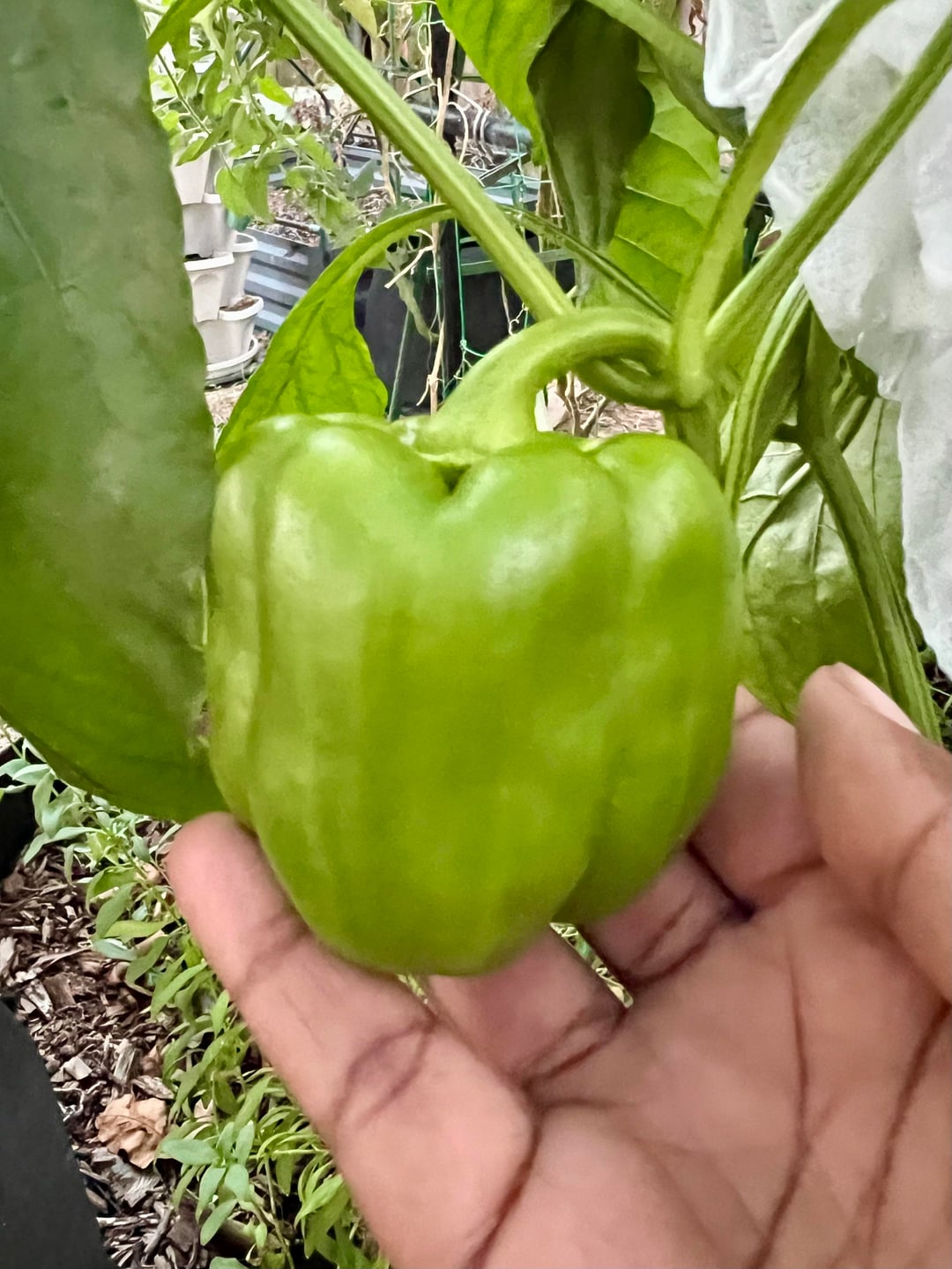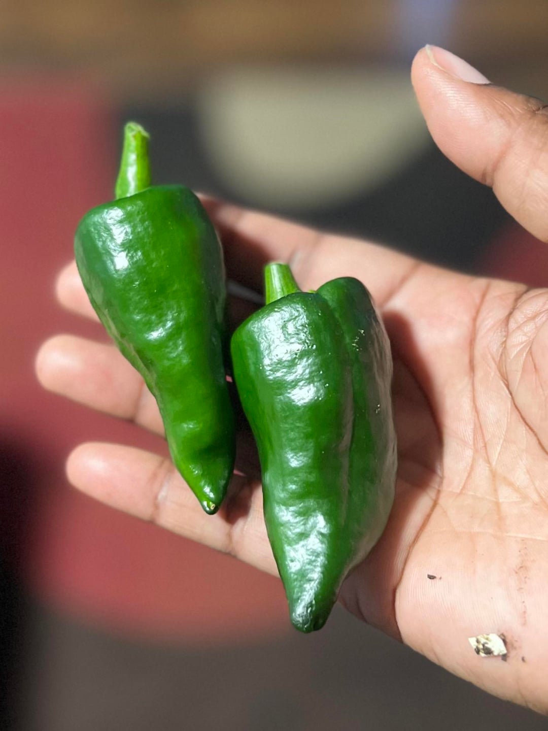 So last year, my mother was cutting up (supposedly) bell peppers for a dish, scraped together all the seeds and gave them to me for my garden this year. Out of the handful I sowed, two plants survived and are finally chugging out peppers. One is producing bell peppers as expected, while the other one is…interesting? Quick Google image search says these could be poblanos and I haven’t done a taste test yet.