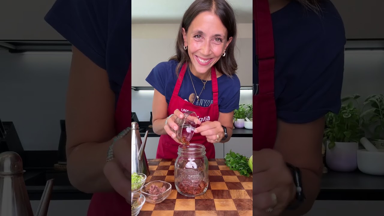 3️⃣ In un barattolo da 500 ml alternate mozzarelline, pomodori secchi, acciughe, capperi ed erbe aromatiche.