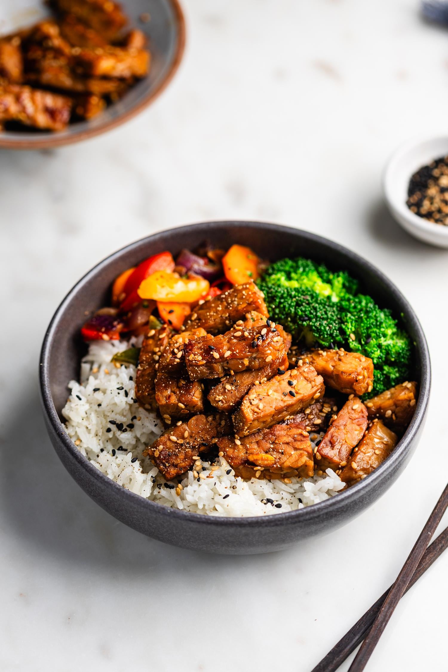 This is one of my favorite ways to cook tempeh. It’s so easy to put together yet so delicious! I love serving it with warm jasmine rice and stir-fry vegetables.