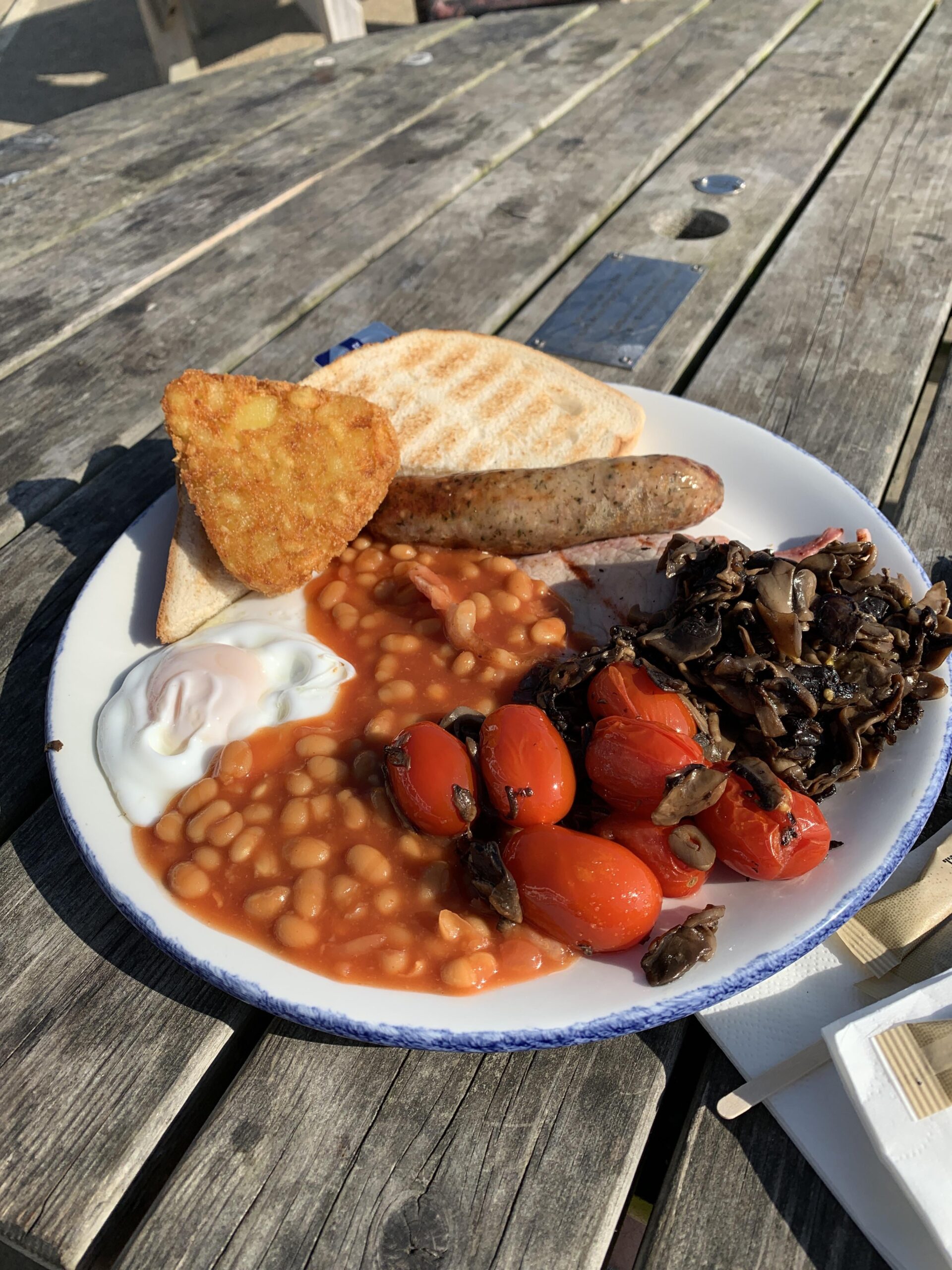 £9.50 on the beach St Helens Isle of Wight, sat on the sea wall in august sunshine, beach about a metre away, view was included.Sausage was local bacon was thick cut, absolutely nothing to complain about thisby blueskyjamie Dining and Cooking