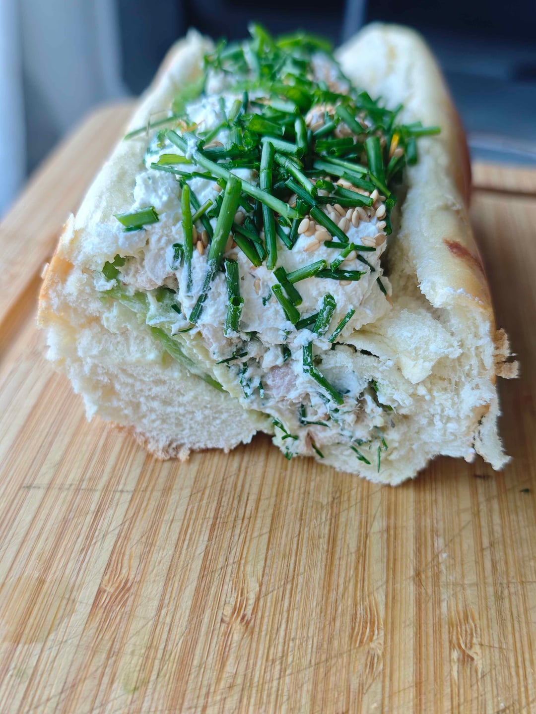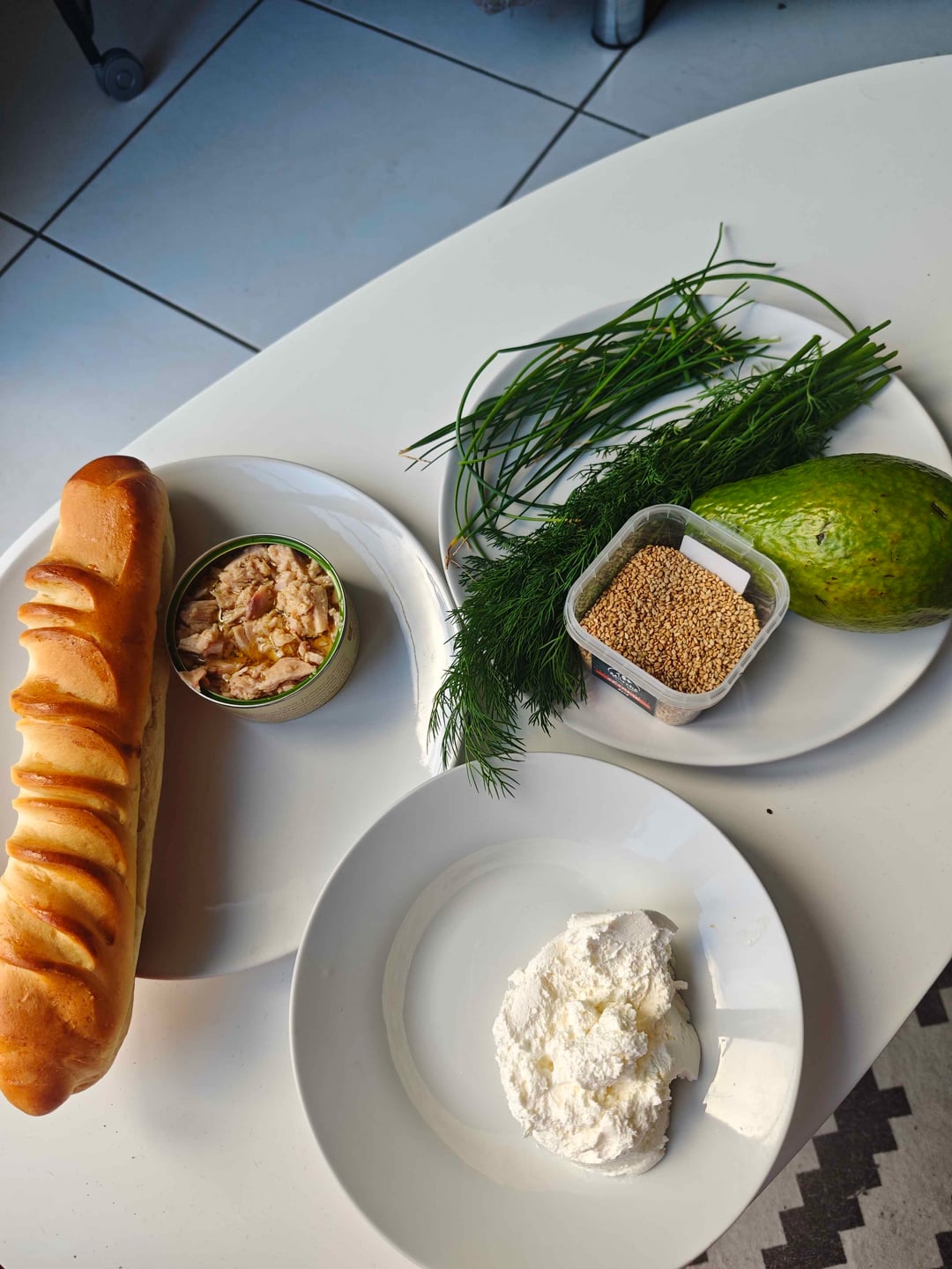 Coliop-Kolchovo 2 days ago There are the ingredients:– A viennois bread (smooth bread almost brioche like)– Olive oil canned tuna– Fresh salted whipped cheese– Half an avocado– Sesame seeds– Dill– Chive