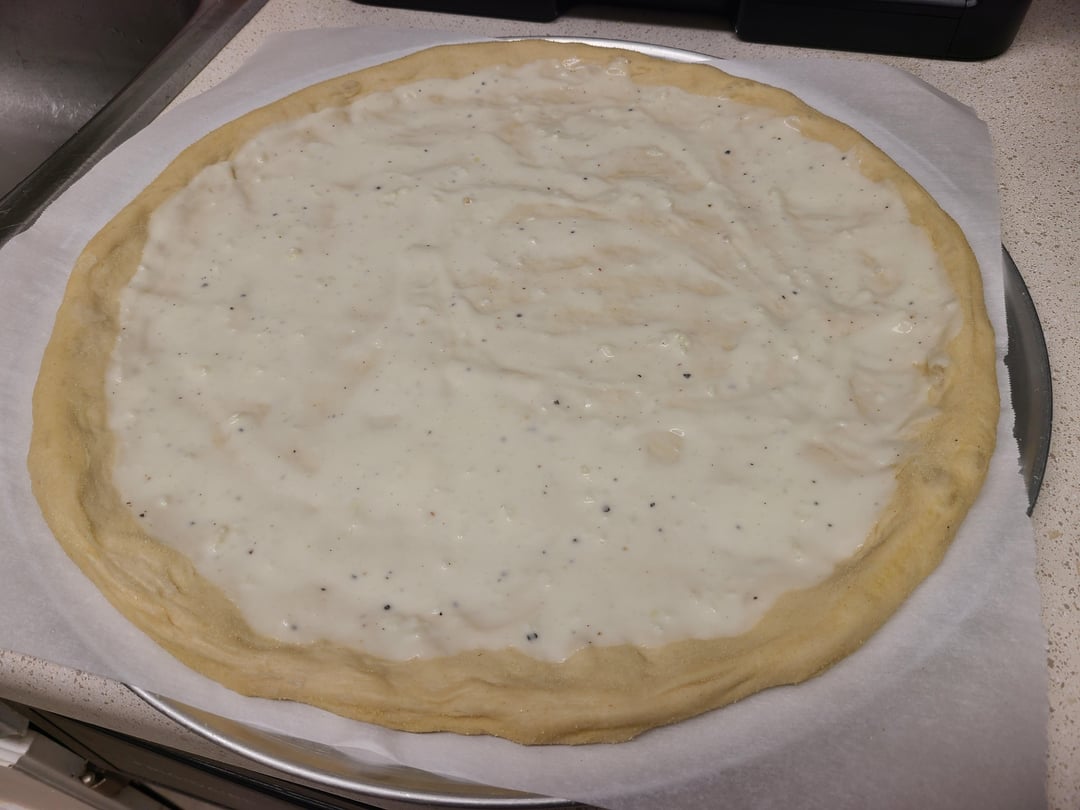 I mean I would 100% destroy a slice of this excellent looking pizza but white sauce? Wth?