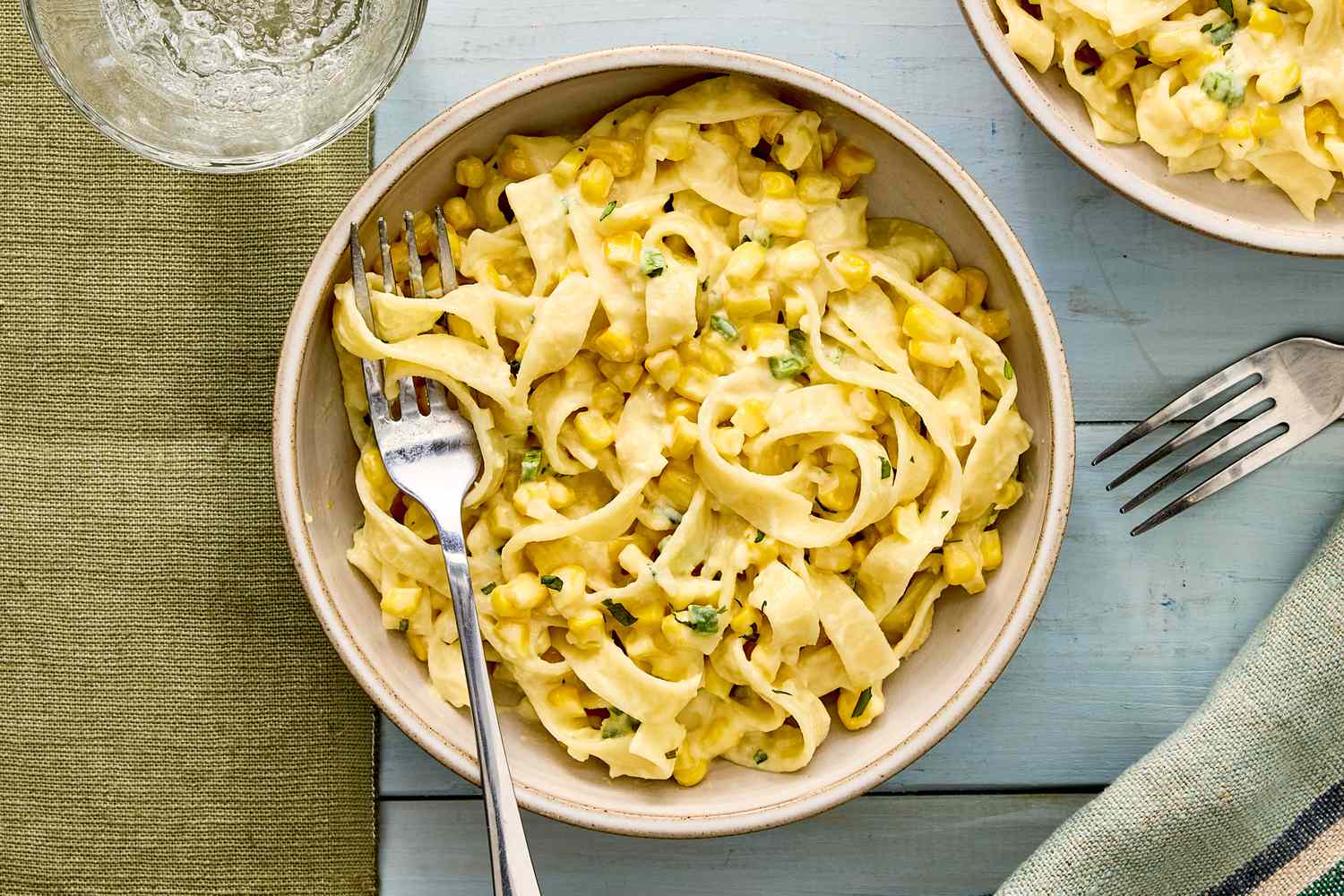 Because the corn purée is thick, the pasta will set up quickly once plated. To ensure that the pasta has the correct consistency, make sure a decent amount of sauce is pooling in the bottom of the Dutch oven. That way, when it hits the table, it’s perfectly creamy.Don’t skip the salt in your pasta water. Well-seasoned pasta water makes sure the pasta is flavored, and it means the water can be used in your pasta sauce, too.Purée the corn mixture until it’s perfectly smooth; you don’t want your sauce to be gritty.