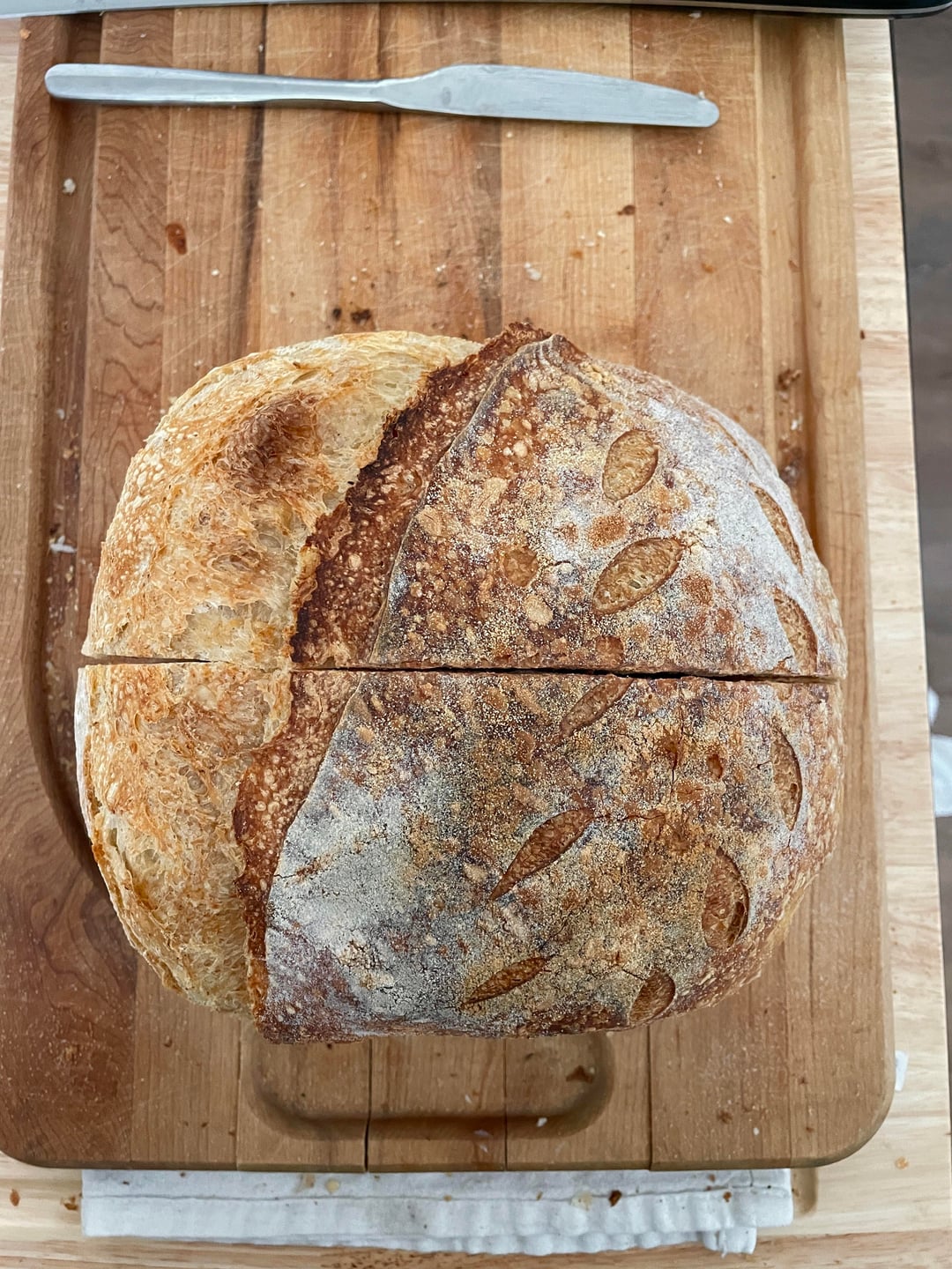 I love the repurpose of a rotisserie chicken lid 😂 Great ingenuity and resourcefulness for a beautiful loaf.