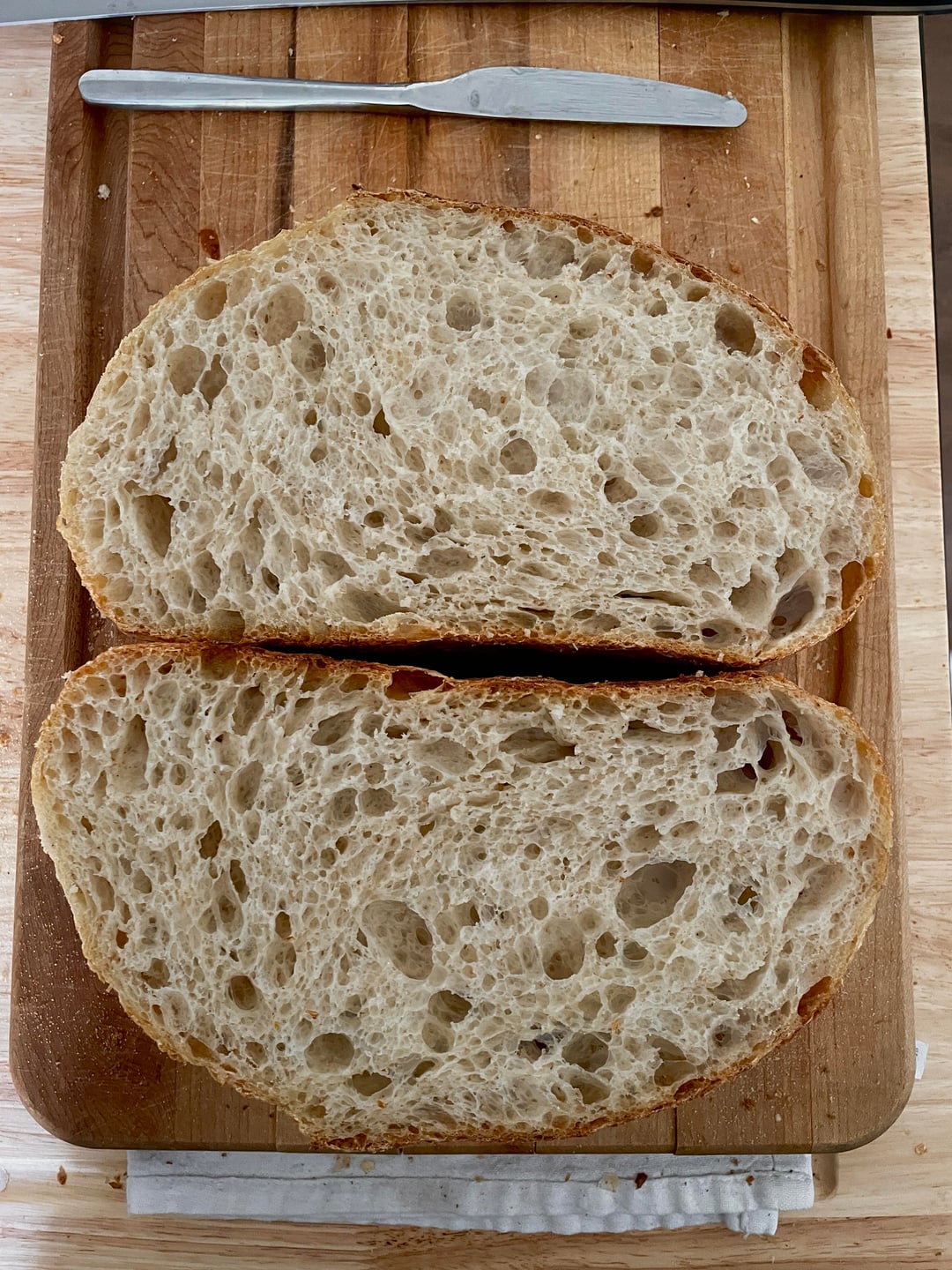 I'm genuinely stunned and quite happy with the results. I'm not a great diagnostician of bread, so I actually couldn't tell you really if this was overproofed or not, but I liked it. Lovely taste, crispy crust, not gummy or wet texture. If it is overproofed, I guess I like overproofed bread, so my fears are unnecessary. 😀
