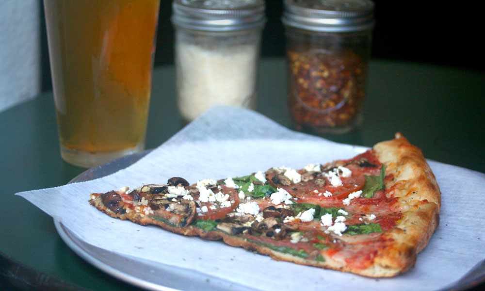 Similar to Downbeat Diner, vegan and vegetarian options are heavily featured on the menu; everyone should find something to like. Pizzas are thin-crust with toppings both basic (cheese and pepperoni) and not-so-basic (the “Hotel Street” features chicken adobo and cabbage). The plan right now is for the slice menu to change daily between six and nine selections ($3.50 to $4), while the list of whole pies will switch up weekly ($18 to $18.50). A gluten-free option is in the works.