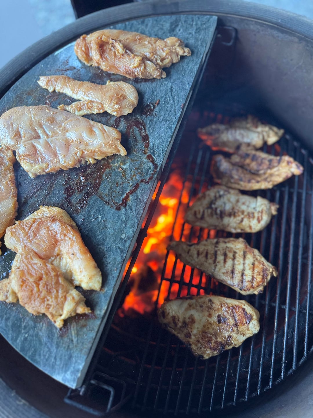 Is that raw chicken on the soap stone at the highest level?