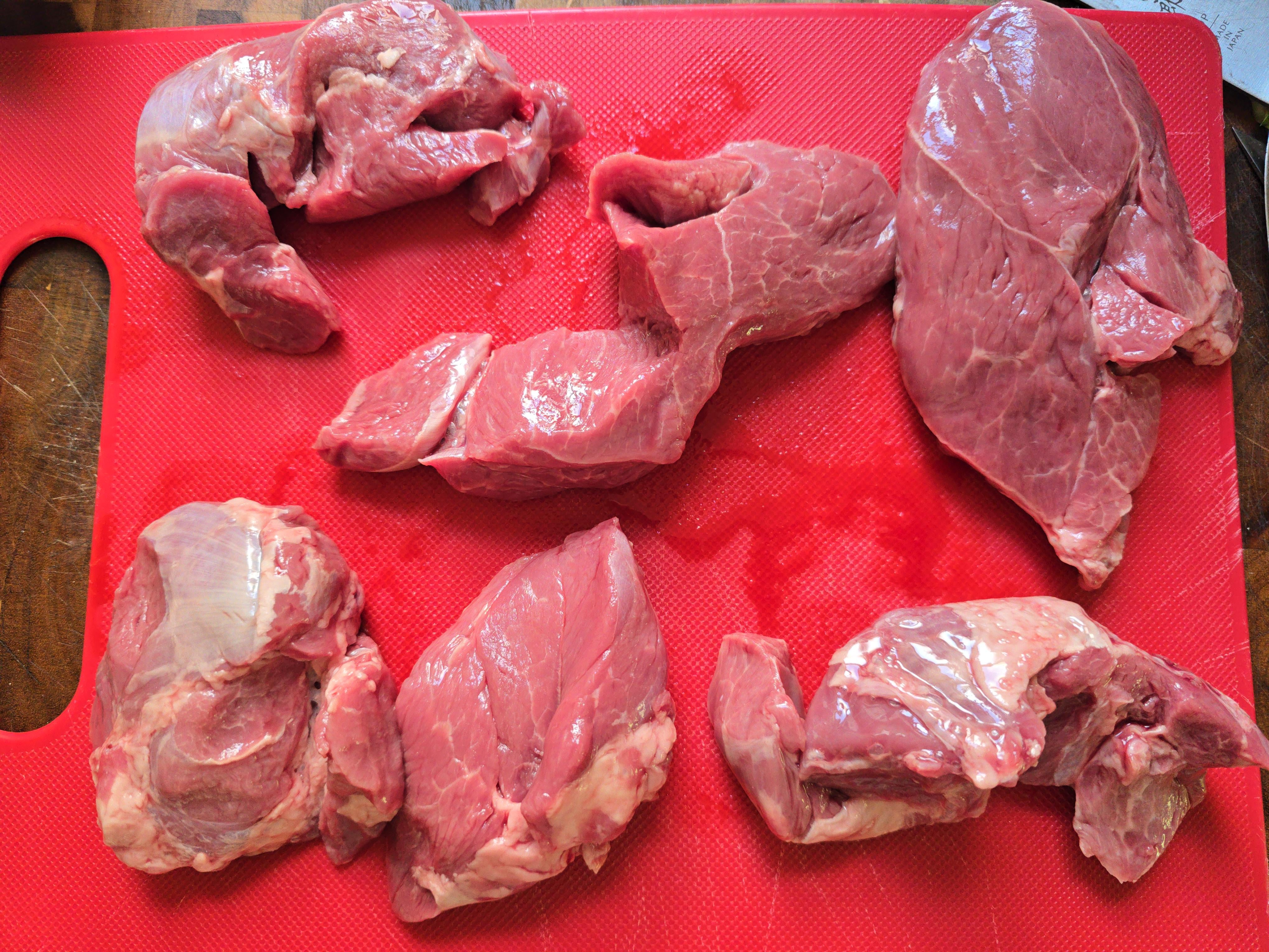 As part of a weekly food bag we got given these horribly mangled pieces of lamb rump that add up to about 600g.