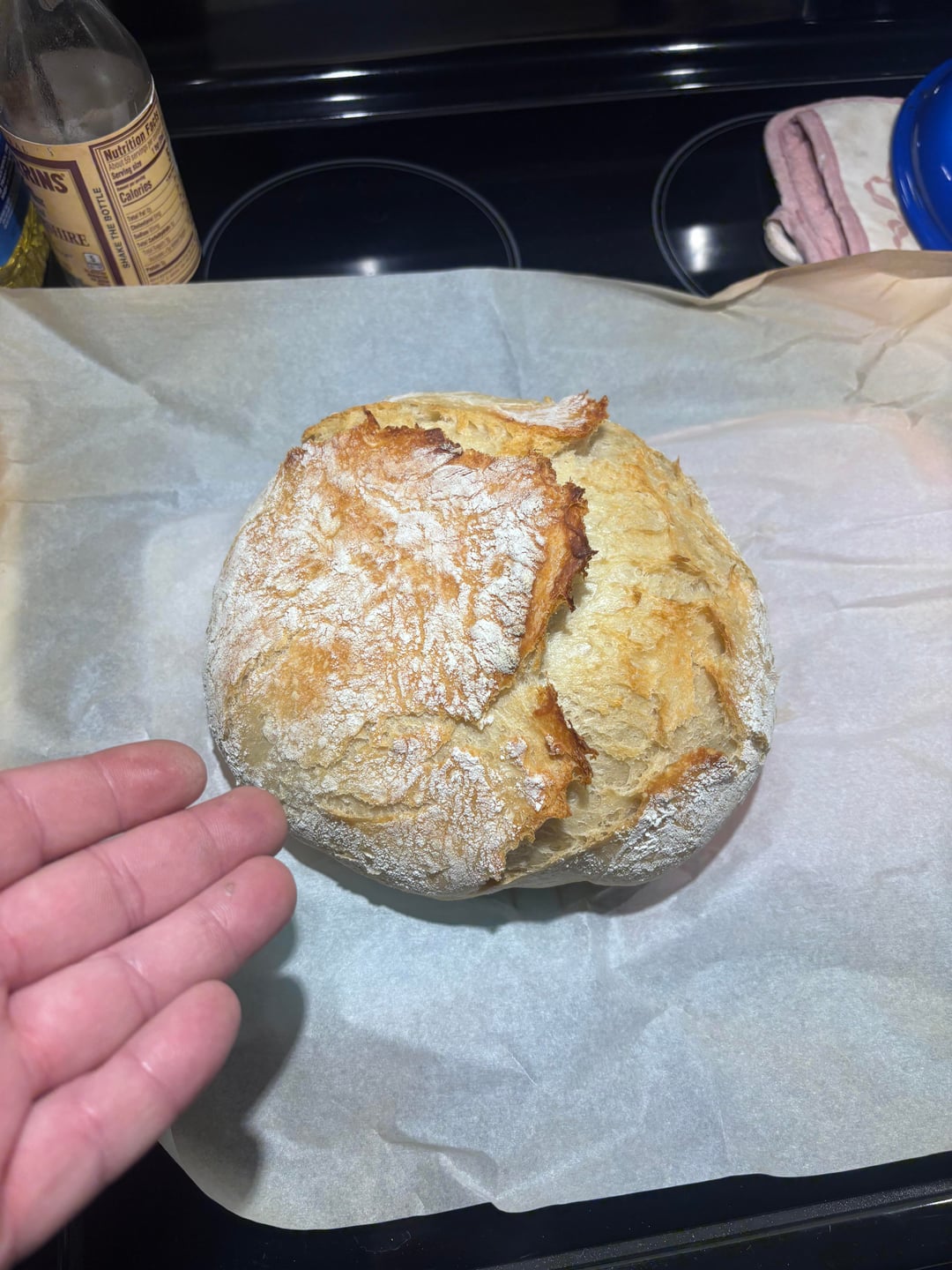 my first ever loaf of bread was made today.by wilpoptires_the_2nd 8 Comments ShaggyLlamaRage 2 days ago The hand gesture on the last two pics are giving me “Behold!….bread” rolandboard 2 days ago Sure was. Well done!! stardustandtreacle 2 days ago It’s lovely! Was it a no knead loaf? Also, did you score the top? Fuzzy_Welcome8348 2 days ago Looks lovely! Nice job Alternative_Teach789 2 days ago Hey, my sincere condolences about your mum. May she R.I.P. 🙏🏻Great job on the bread. It looks delicious 🙌 IWorkOutToEatChips 2 days ago There is no way thats your first 😱. I’ve been baking for 20 years and I’ve never gotten a ear like that cursedbridges 2 days ago Looks absolutely amazing! BubsK2Lt 2 days ago Awesome!! I just recently started myself and made my 3rd batch this weekend. Your bread looks amazing!!!