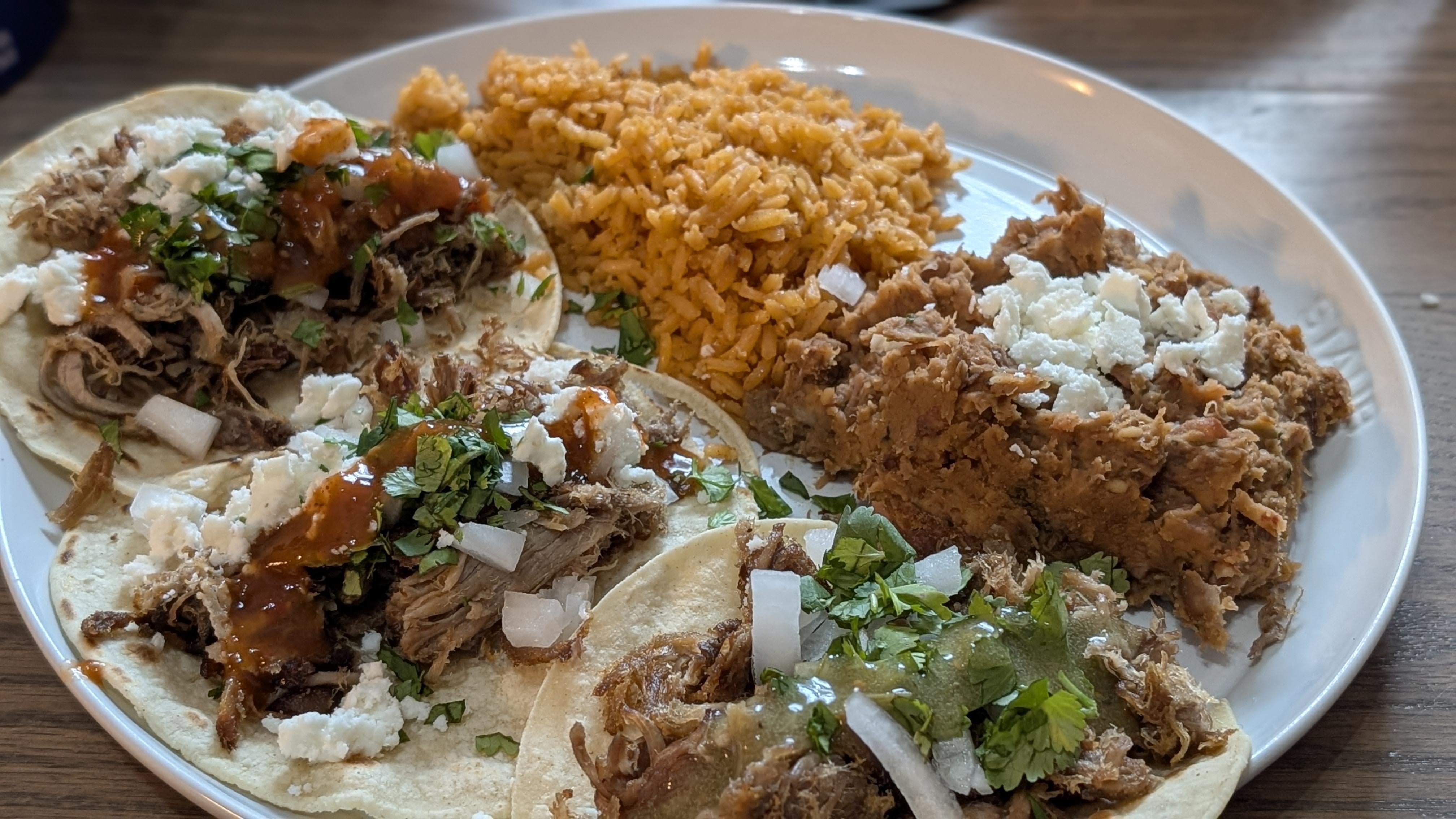 I fried some of the skin from the ham hocks I used in my frijoles charros yesterday with the carnitas and mashed and fried the leftover beans. by Fonz_72 Dining and Cooking