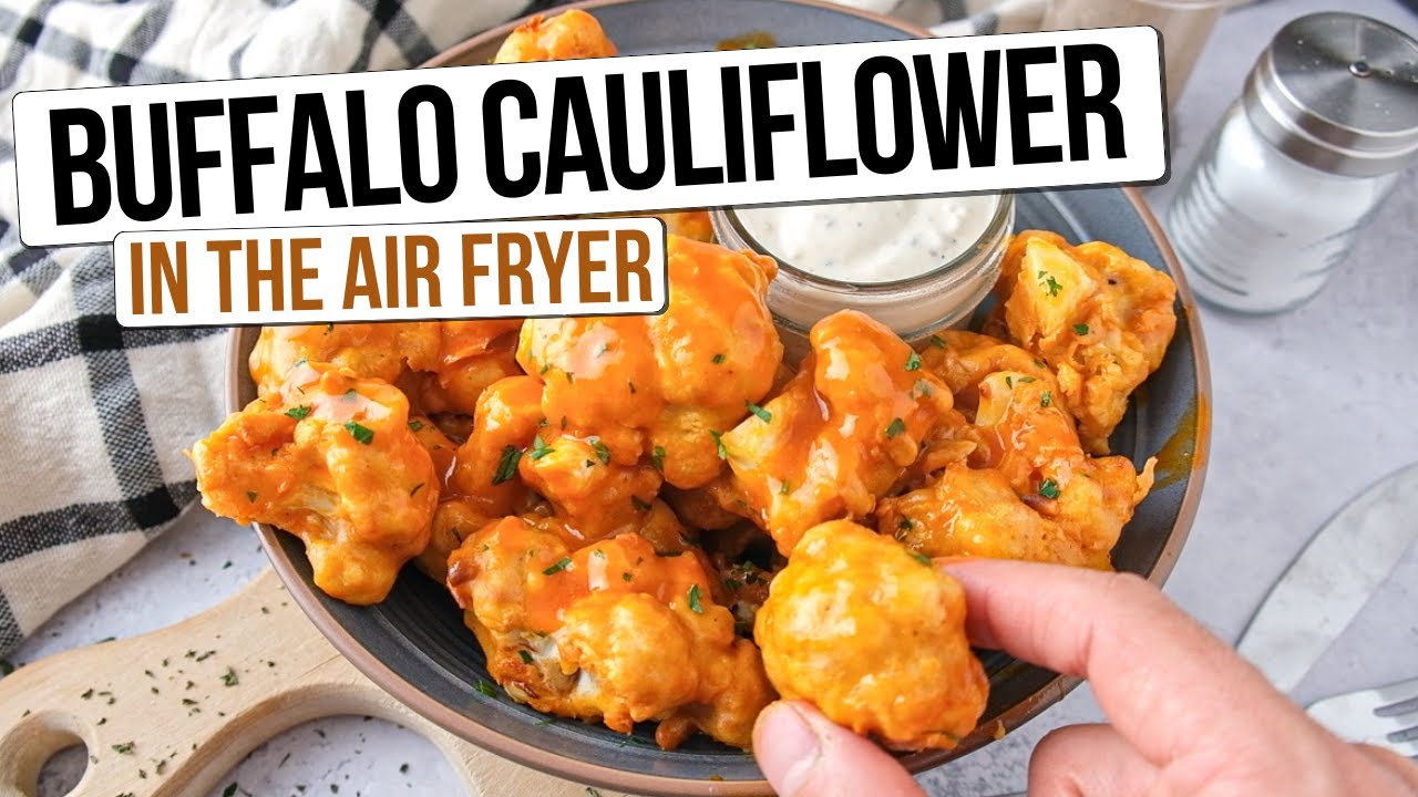 Hi everyone. Today we’re making homemade buffalo cauliflower wings in the air fryer. These buffalo wings are one of our favorite recipes because they’re a delicious appetizer or snack that isn’t too hard to make. To make this recipe, you’ll need one medium sized head of cauliflower, 1 cup of allpurpose flour, 1 tsp of garlic powder, 1 tsp of paprika, 1/2 teaspoon of salt, 1/4 teaspoon of black pepper or more to taste, 1 cup of milk, 1/3 of a cup of buffalo sauce, and 1 tbsp of melted butter. First, cut or rip the cauliflower into smaller fuettes. Try to get them roughly the same size to help with even cooking. When you’re done, you can rinse and dry the fuettes before moving on to the next step. In a large bowl, add the flour, garlic powder, paprika, salt, and black pepper. Then, slowly add the milk while whisking. Keep whisking until there are no lumps in the batter. The mixture should have a pretty thick consistency, so don’t add any extra milk. Next, add the cauliflower fuettes into the bowl with the batter. Gently mix with a large spoon until the fuettes are all covered. Now, preheat the air fryer to 380° F or about 190° C. When the air fryer is hot, add as many battered cauliflower fuettes into the air fryer as you can fit without them touching. Sometimes we make them in one batch, sometimes two batches. Cook the battered cauliflower at 380° F for 8 to 10 minutes total or until the cauliflower is tender and the batter is cooked and crispy. Flip the fuettes approximately halfway through the cooking time. If you try flipping the wings and the batter sticks to the air fryer too much, cook them a minute or two longer first and then try flipping again. Keep in mind that the exact cooking time can vary depending on the size of the cauliflower fuettes and your air fryer. While you wait for the cauliflower to cook, whisk the buffalo sauce with the melted butter in a small bowl or dish and then set this mixture aside. When the battered cauliflower bites are done, remove them from the air fryer and place them in a bowl for now. Cook the second batch if you need to. Then add these ones to the bowl as well. With all the cooked cauliflower wings in a large bowl, drizzle the buffalo sauce on top and gently stir or toss until the cauliflower wings are evenly coated. Then serve them right away and enjoy as is or with a dipping sauce. And that’s it. You can find the written version of the instructions in the pinned comment below. Subscribe to our channel for more air fryer recipes posted every week. And we’ll see you next time. Bye. [Music]