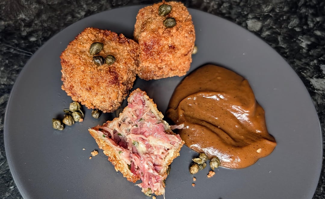 Ham hock & Stilton croquettes, burnt apple sauce by umbertobongo 1 Comment extrarims 1 month ago Hey what does it taste like. Not familiar with European cuisine 🙂