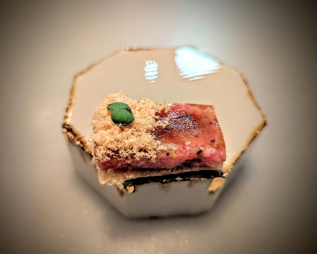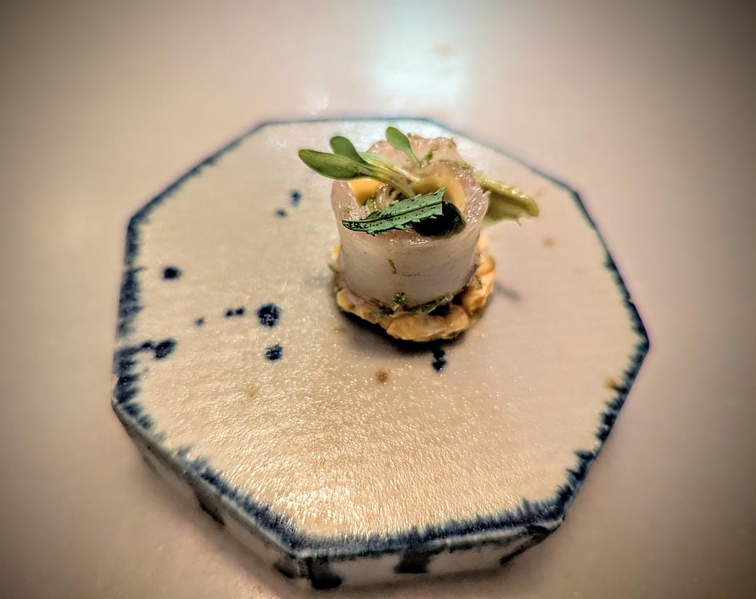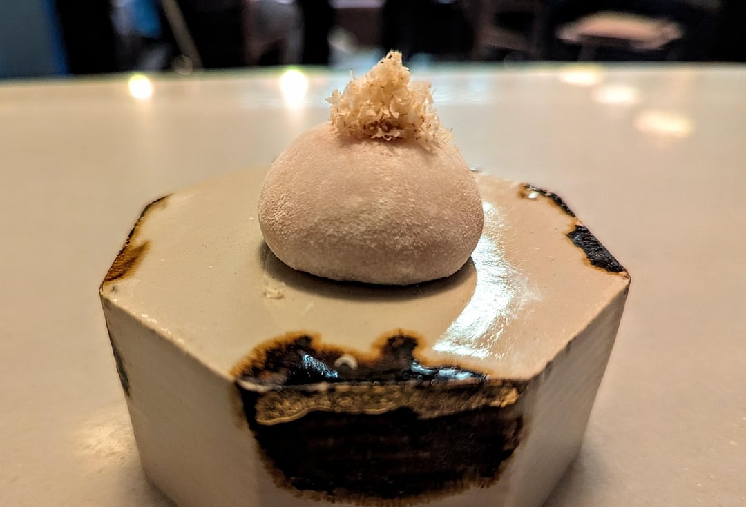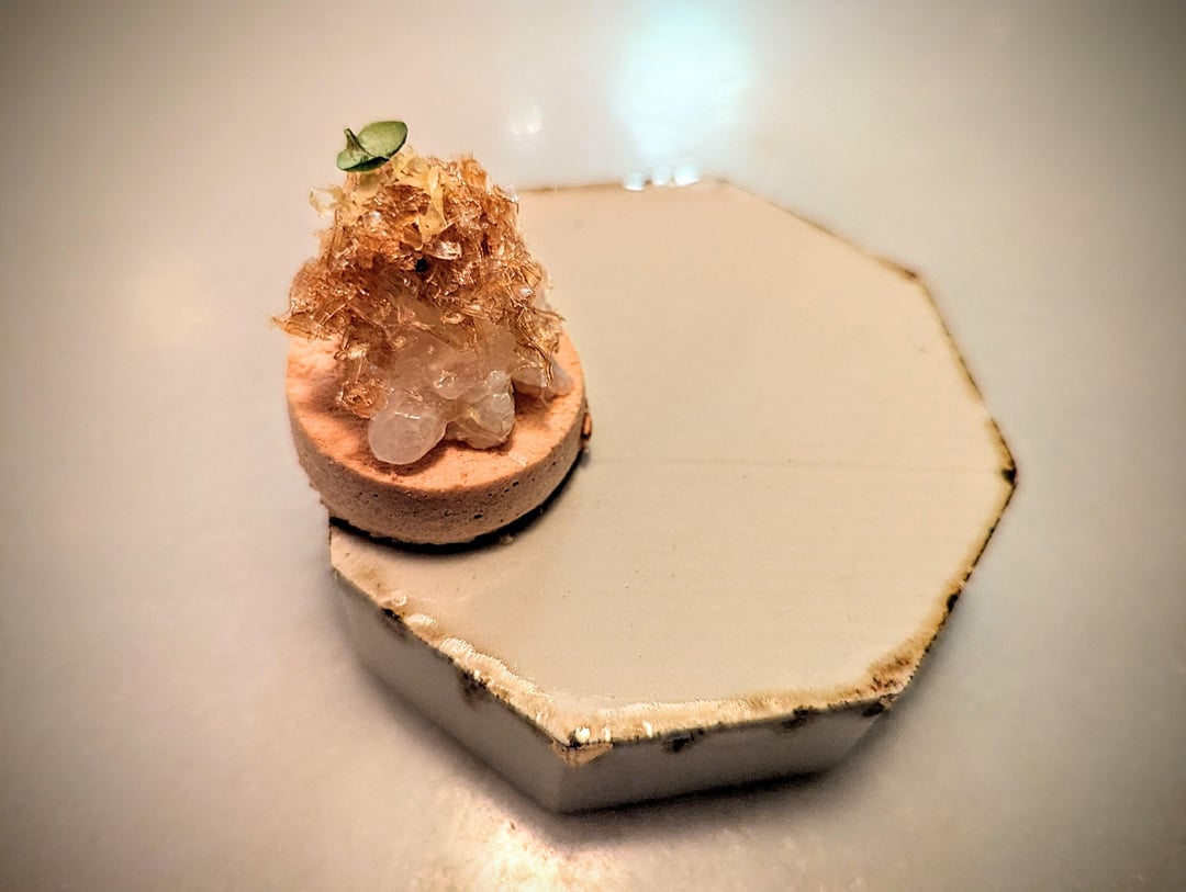 The tasting menu consists of 18 courses (plus petit fours), the first eight of which are snacks, six are savoury, one is a cocktail, and three are desserts. Of the snacks, not one missed the mark, but there were some distinct favourites: the pesto, tomato and mozzarella canapé was like the first bite of a fine Neapolitan pizza, the sea bass ceviche toast had a nice tang imparted by the inclusion of physalis fruit, and the pickled foie gras and crispy brioche had flavour as deep as the deep Atlantic ocean. But the bite I held in deepest devotion was the mochi. That this thing held together is almost miraculous, packed as it was with sobrasada and cheese. But hold together it did, until my teeth pierced the thin dough and the meaty, tangy flavour burst forth. My favourite bite of the meal and of the entire trip.