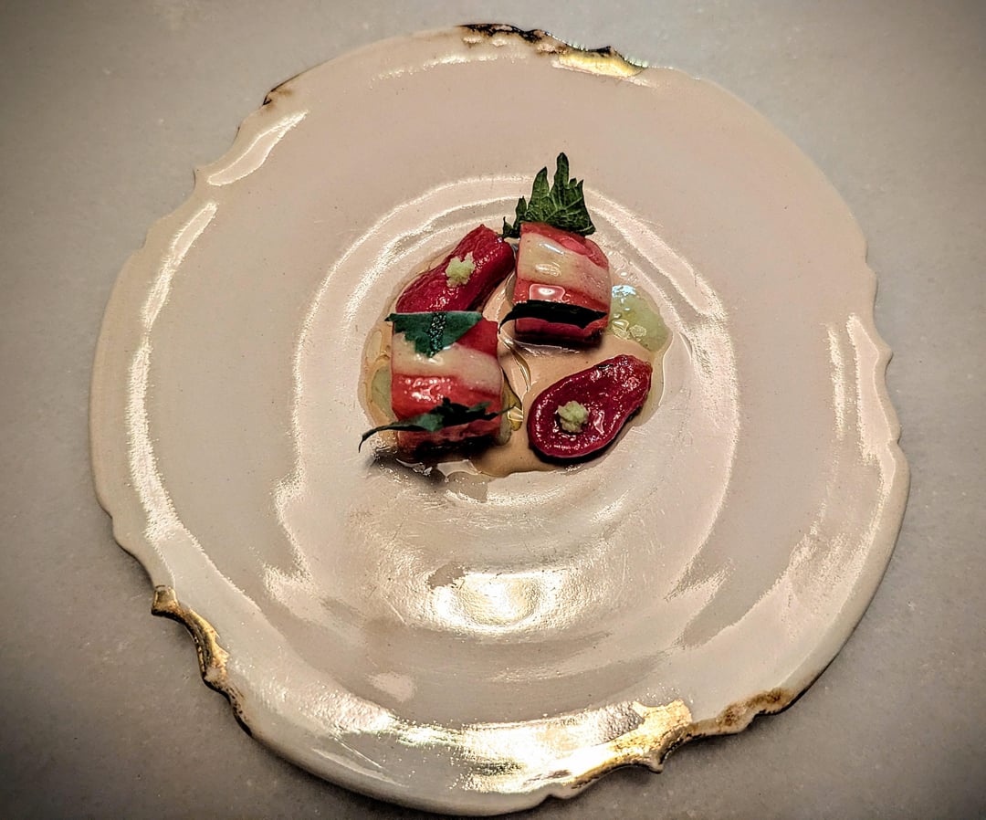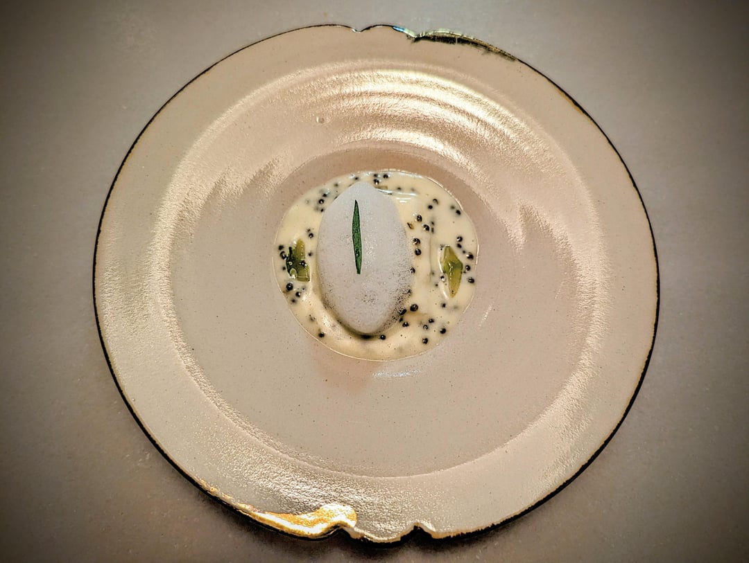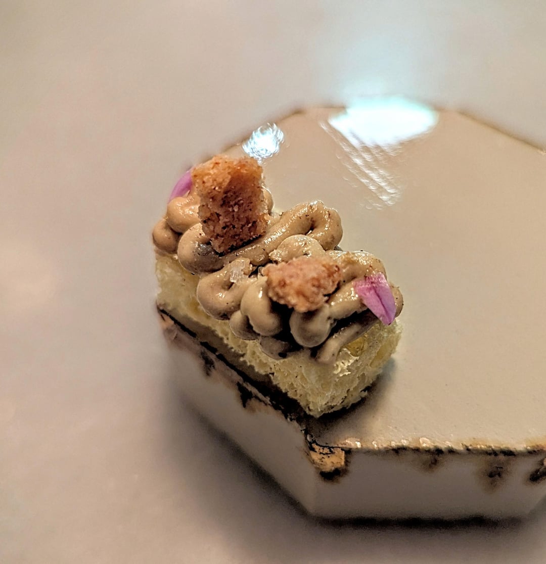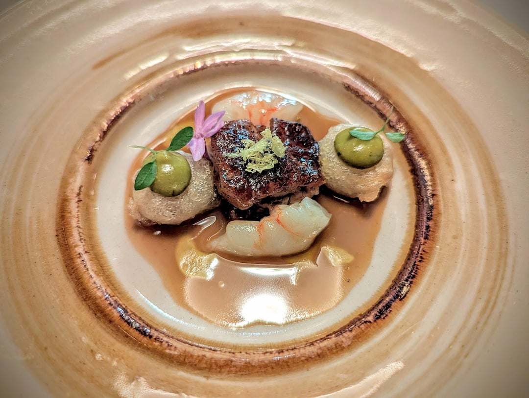 The tasting menu consists of 18 courses (plus petit fours), the first eight of which are snacks, six are savoury, one is a cocktail, and three are desserts. Of the snacks, not one missed the mark, but there were some distinct favourites: the pesto, tomato and mozzarella canapé was like the first bite of a fine Neapolitan pizza, the sea bass ceviche toast had a nice tang imparted by the inclusion of physalis fruit, and the pickled foie gras and crispy brioche had flavour as deep as the deep Atlantic ocean. But the bite I held in deepest devotion was the mochi. That this thing held together is almost miraculous, packed as it was with sobrasada and cheese. But hold together it did, until my teeth pierced the thin dough and the meaty, tangy flavour burst forth. My favourite bite of the meal and of the entire trip.