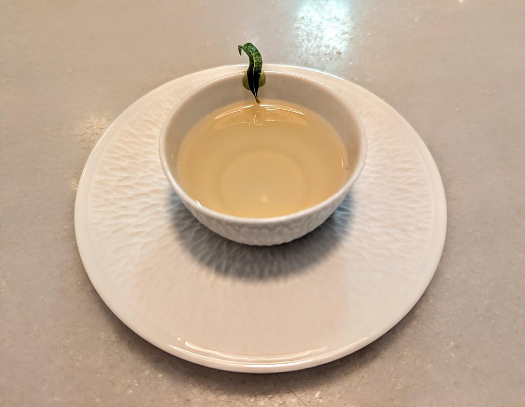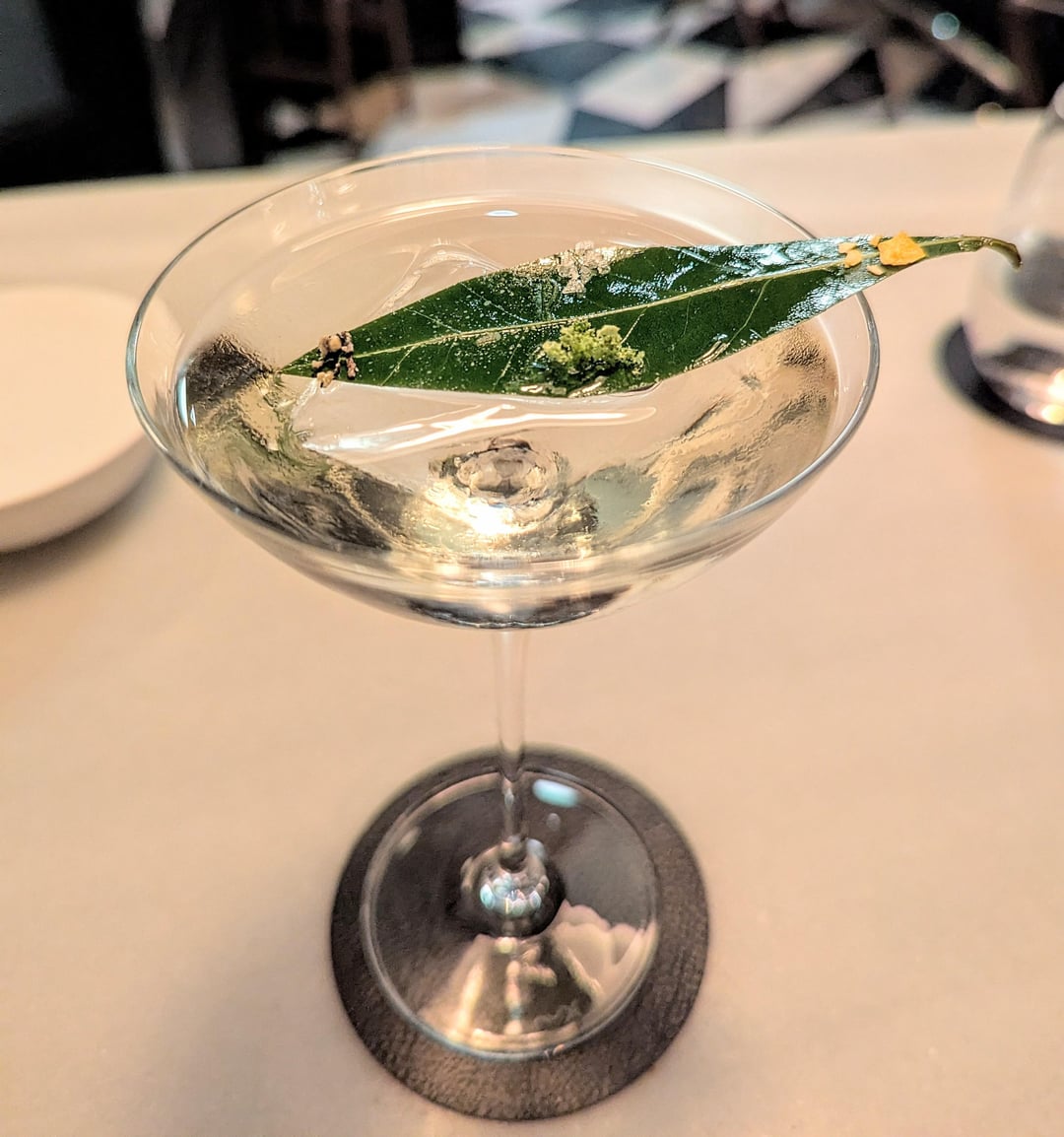 Then the cocktail, which was both a surprise and a gift. Sweet, salty and peppery (the former due to the cocktail itself, the latter due to the accompanying leaf dotted with several different seasonings), it was an inspired choice to collaborate with SIPS and position this as a segue from savouries to desserts.