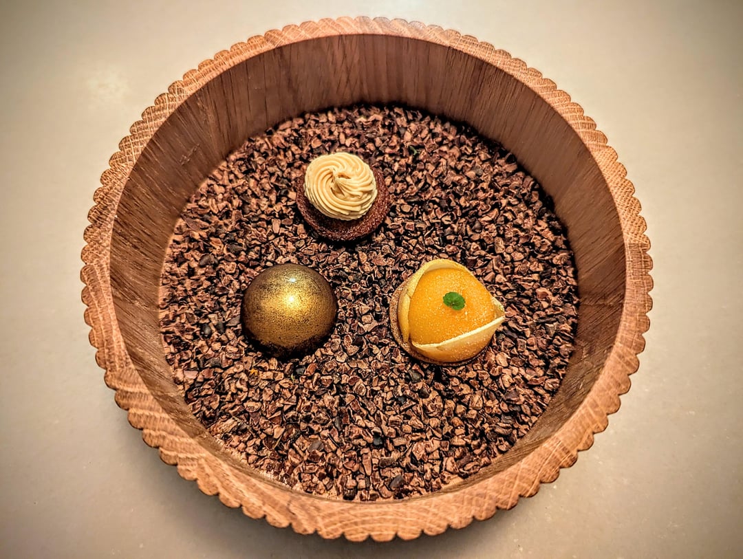 Moving onto the savoury dishes, the mushroom dish (which was mushroom front to back) and the Turbot with beurre blanc and caviar (nice enough but the sauce could have been taken further) were so-so, whereas everything else was excellent. The tomato dish was sweet and a little spicy, the tuna belly was melt-in-the-mouth delicious, and the pigeon was simple yet refined, the cacao adding a nice depth of flavour.