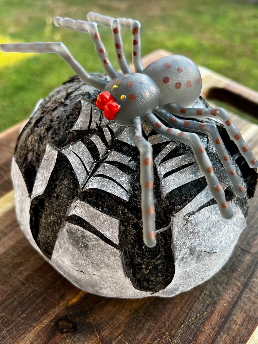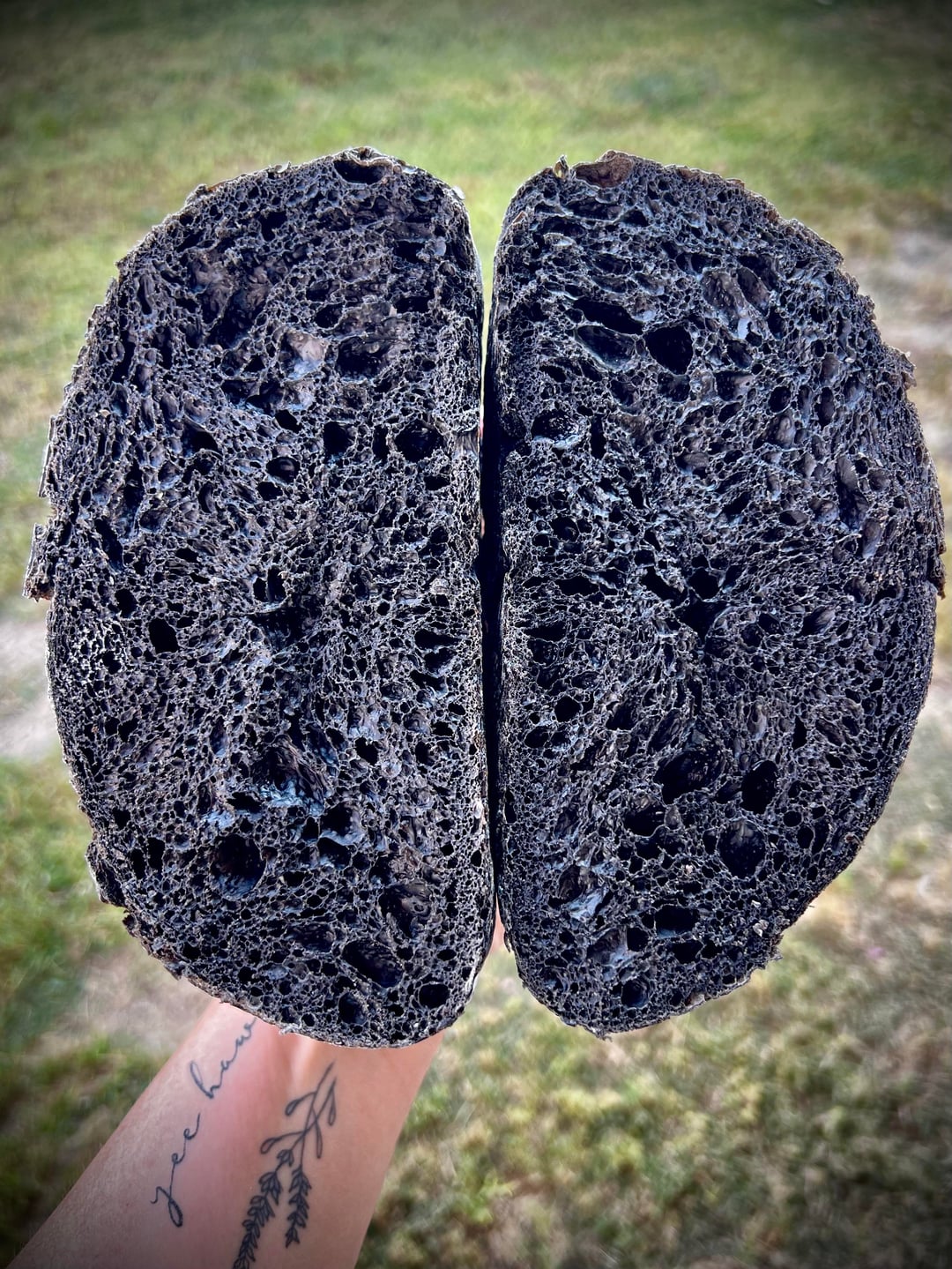 Here’s my squid ink sourdough to kick off spooky season. It’s giving… Wednesday Addams? I had to dig out a toy spider from my toddler to distract from my awful web scoring lol