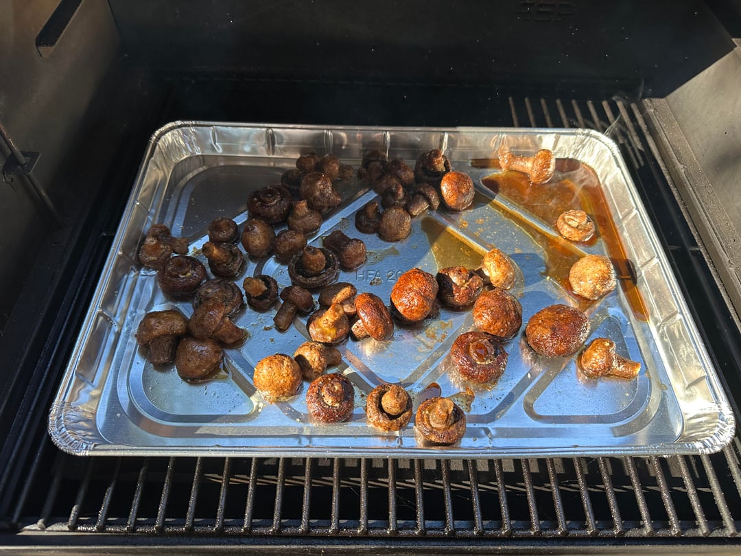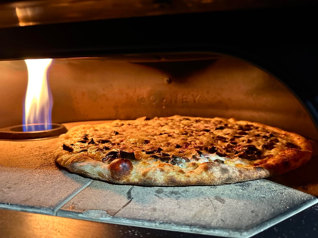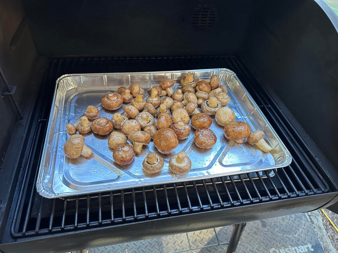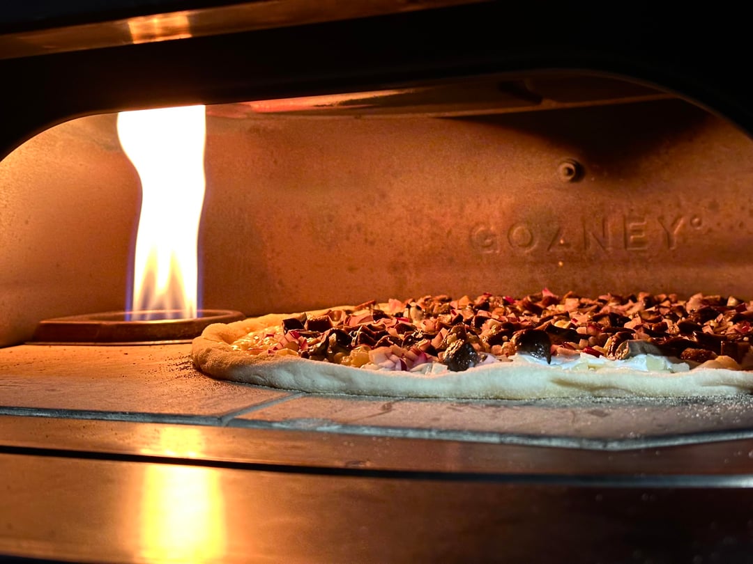 This pizza was inspired by the mushroom pizza at Ceres in NYC. I made my own tweaks, and it really worked! Mozzarella, Scamorza, and smoked Gruyère mix, Mexican Crema, grated Pecorino Romano, diced smoked Crimini mushrooms, diced red onions, and crumbled bacon. Finished with mushroom bouillon powder, fennel pollen, and lots of chopped chives. Then garlic butter on the crust. This really came together nicely and exceeded my expectations.