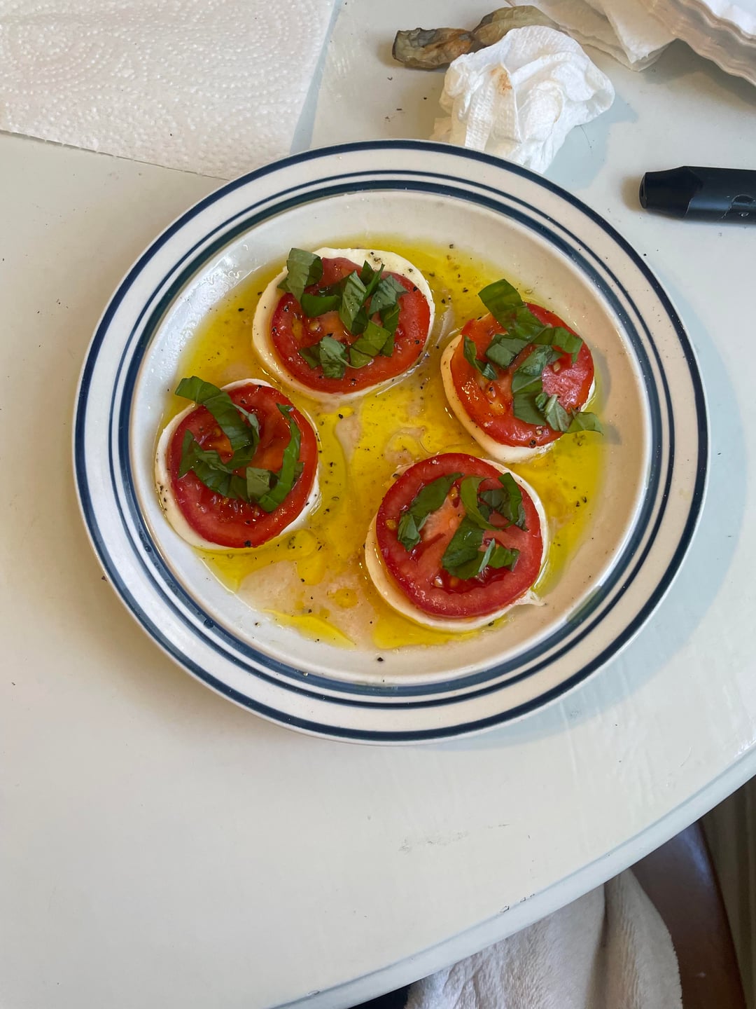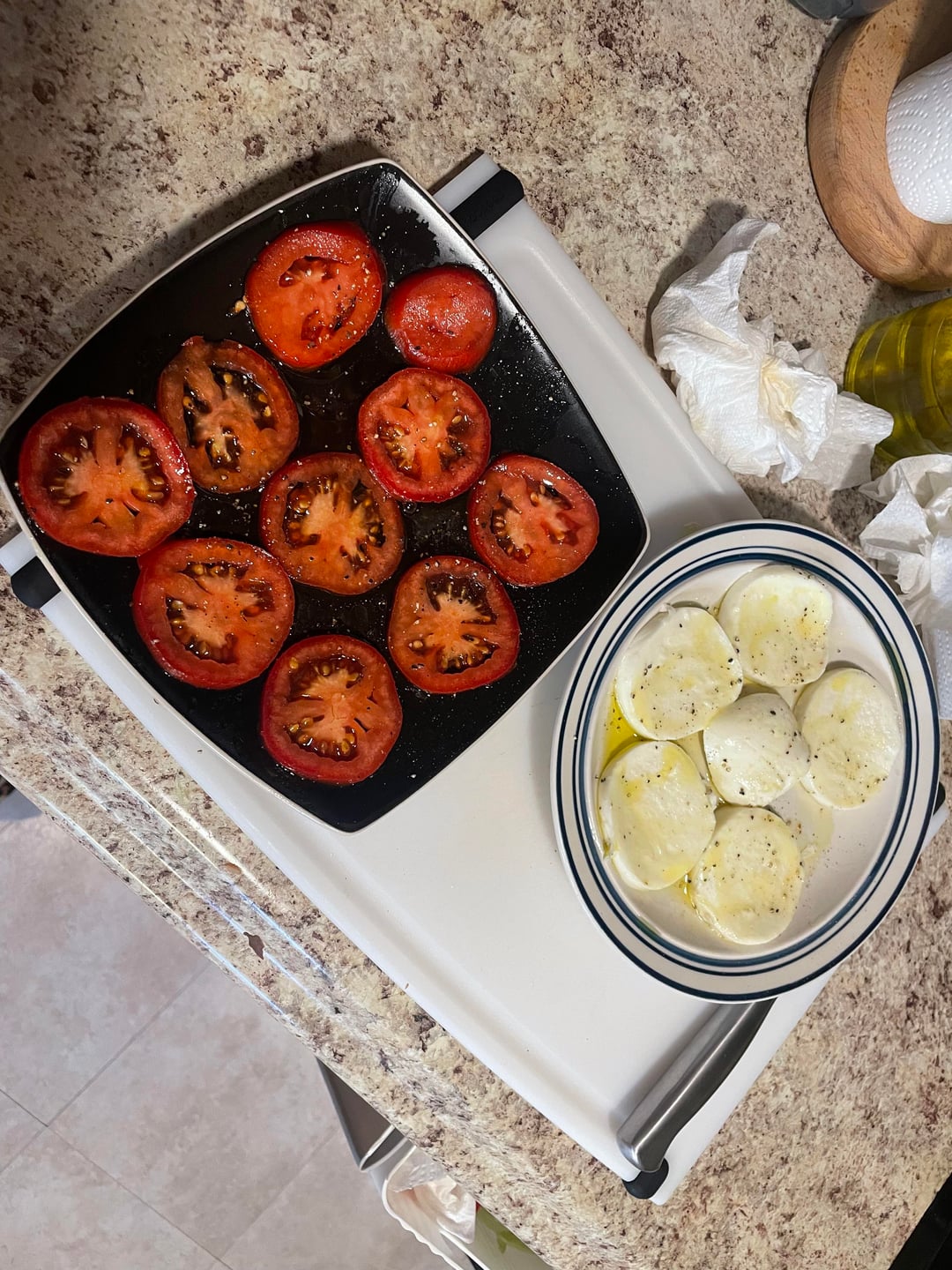 - seasoned tomatoes and mozzarella with s&p & evoo (mozzarella sliced long was my game changer)